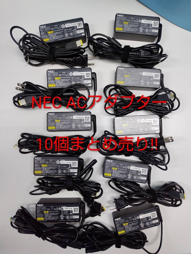 ~ご覧頂きましてありがとうございます~ ※値下げ不可※ 【10個まとめ売り】NEC ACアダプター/PC-VP-BP98/ADP003/20V 2.25A Model: ADP-45TD E/A13-045N1A ◆商品の状態◆ 所々にスレや汚れが見受けられます。通電確認済み。 大量在庫がある為、写真とは異なるラベルやシリアル番号になります。予めご了承ください。 内容物:ACアダプター、電源ケーブル(画像1枚目に写っているもの) ※上記説明に記載が無いもの、写真に載ってないものは付属しません※ 【商品の状態基準:Cランク】 S:新品 N:未使用品 A:使用感が少なく、状態の良い商品 B:使用感はあるが、目立つ傷や汚れがない商品 C:使用感の他、やや傷や汚れが見られる商品 D:目立つ傷がある商品、難あり商品 E:現状品、長時間の動作確認は行っていない。検査時の状態維持を保証が出来ない F:ジャンク品(壊れている物)、動作未確認など (外観の傷や汚れは主観によるもので個人差がございます) 【注意事項】 ・一度人の手に渡った中古品ですので神経質な方はご購入お控えください ・あくまで当方主観です(簡易チェックのみ、見落としがある場合もございます) ・商品の状態は本体をメインに説明しています。付属品はおまけとして考えてください。 ・元箱がある商品に関しまして、スレや汚れ・一部破れ等ある場合もございます。 ・写真は撮影時の天候や光の状態及びモニター環境により、実物と若干違って見える事がございます。 ・注文間違いやイメージと違うなど、お客様都合による一方的なキャンセル・返品・交換は対応出来かねます。 ・輪送中等のトラブル、破損につきましても対応出来かねますのでご了承下さい。 ・領収書は発行致しません。 スムーズなお取引を心掛けておりますので宜しくお願い致します。 ⑧ ns70000135822 b1215912761