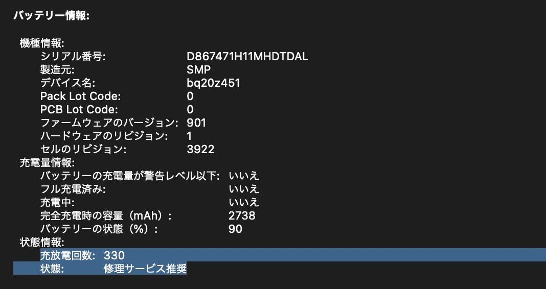 ・バッテリー状態:交換・修理推奨(※バッテリーは消耗品のため、使用時間などの保証ができません)