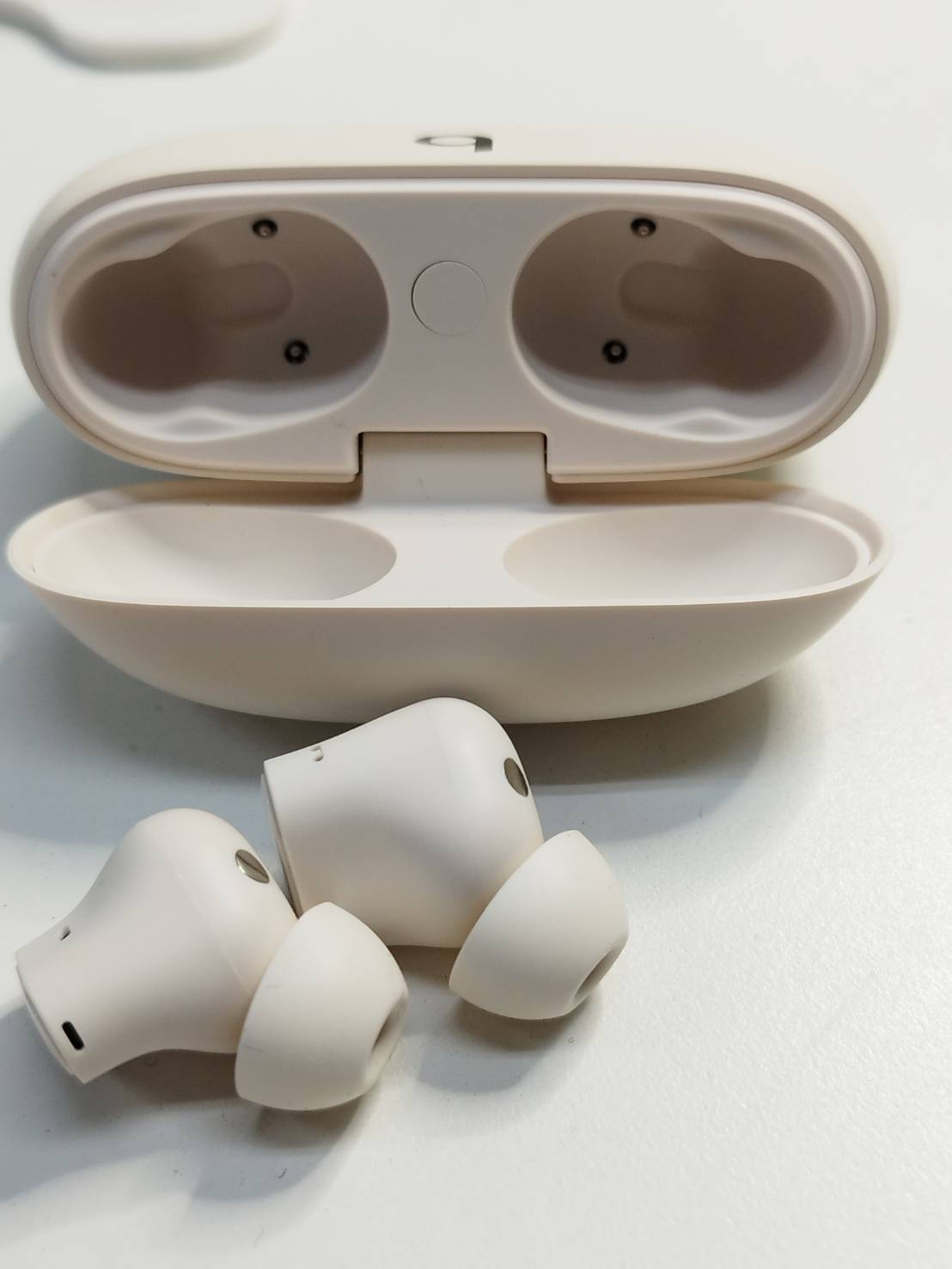 イヤホン、充電ケース、イヤーピース、ケーブル、印刷物(画像1~2枚目に写っているもの全て)