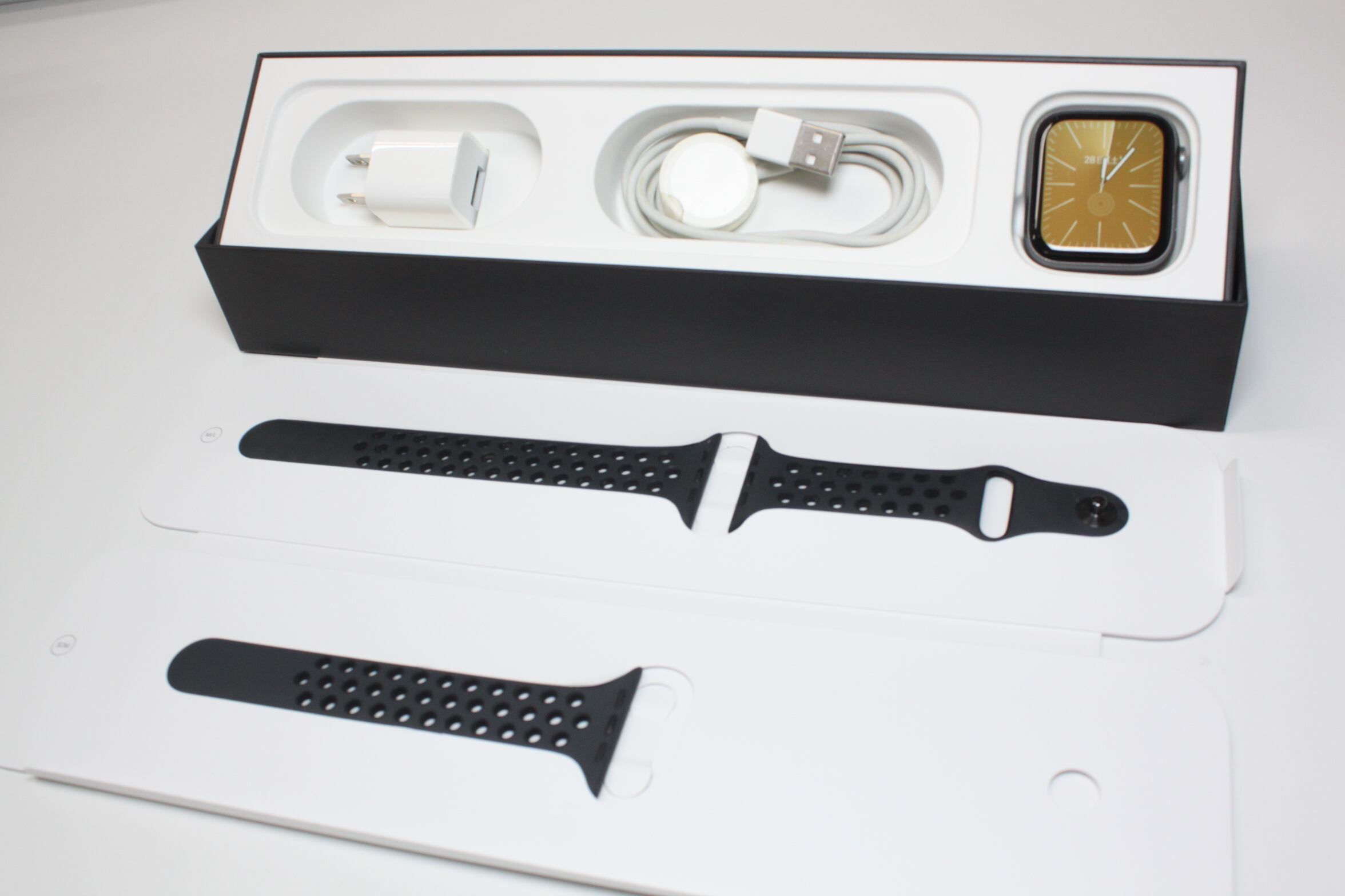 本体、Nikeスポーツバンド、充電ケーブル、元箱(画像1枚目に写っているものすべて)