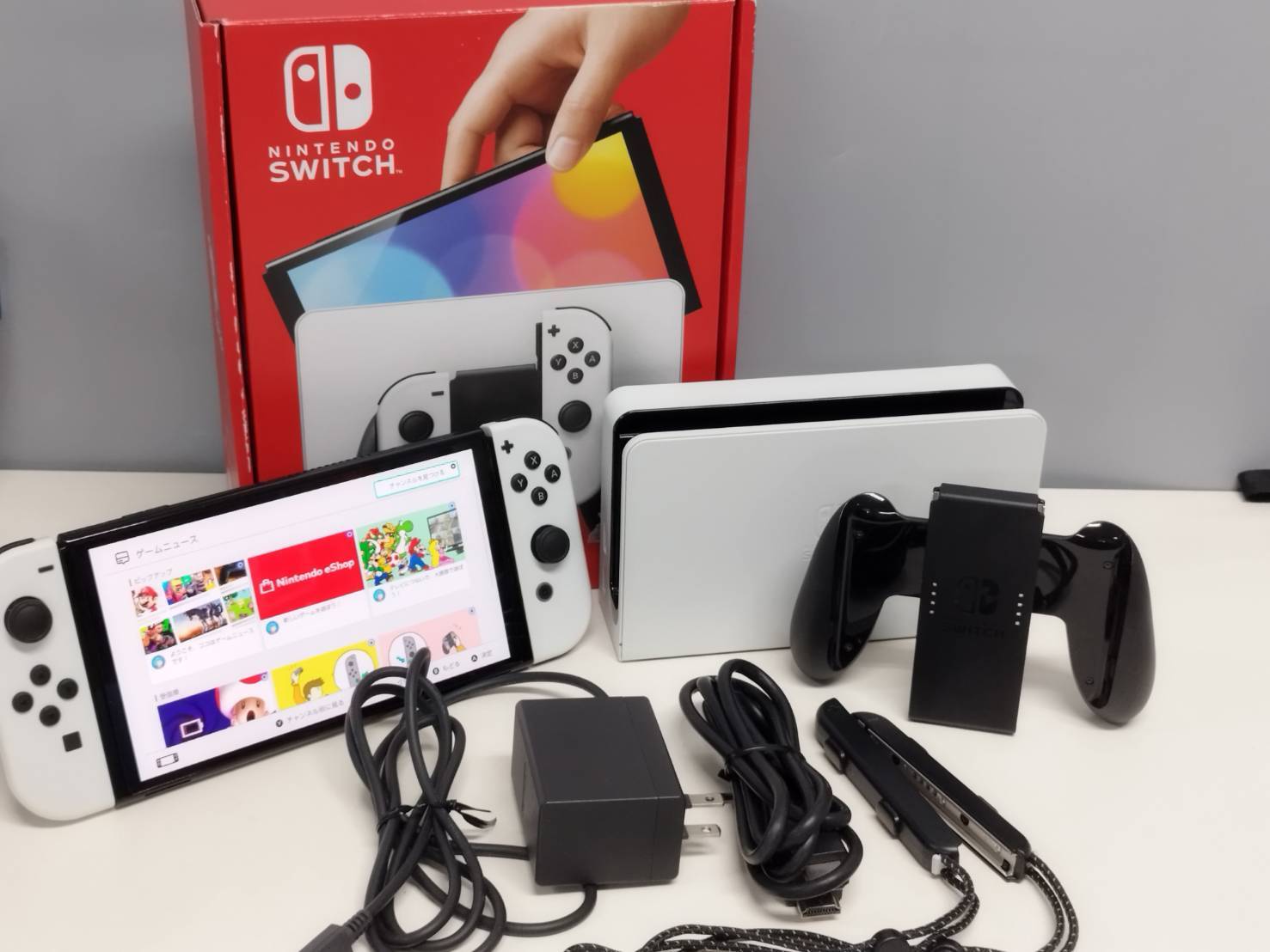 本体、Joy-Con、ドック、グリップ、ストラップ、HDMIケーブル、ACアダプター(画像をご確認ください)