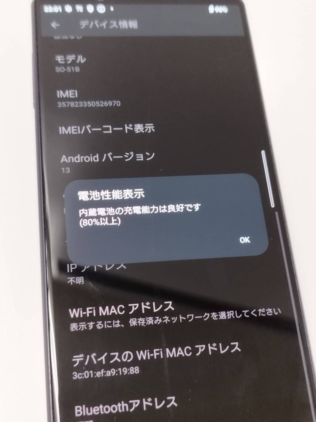 バッテリー性能:内蔵電池の充電能力は良好(80%以上)。初期化・動作確認済み。