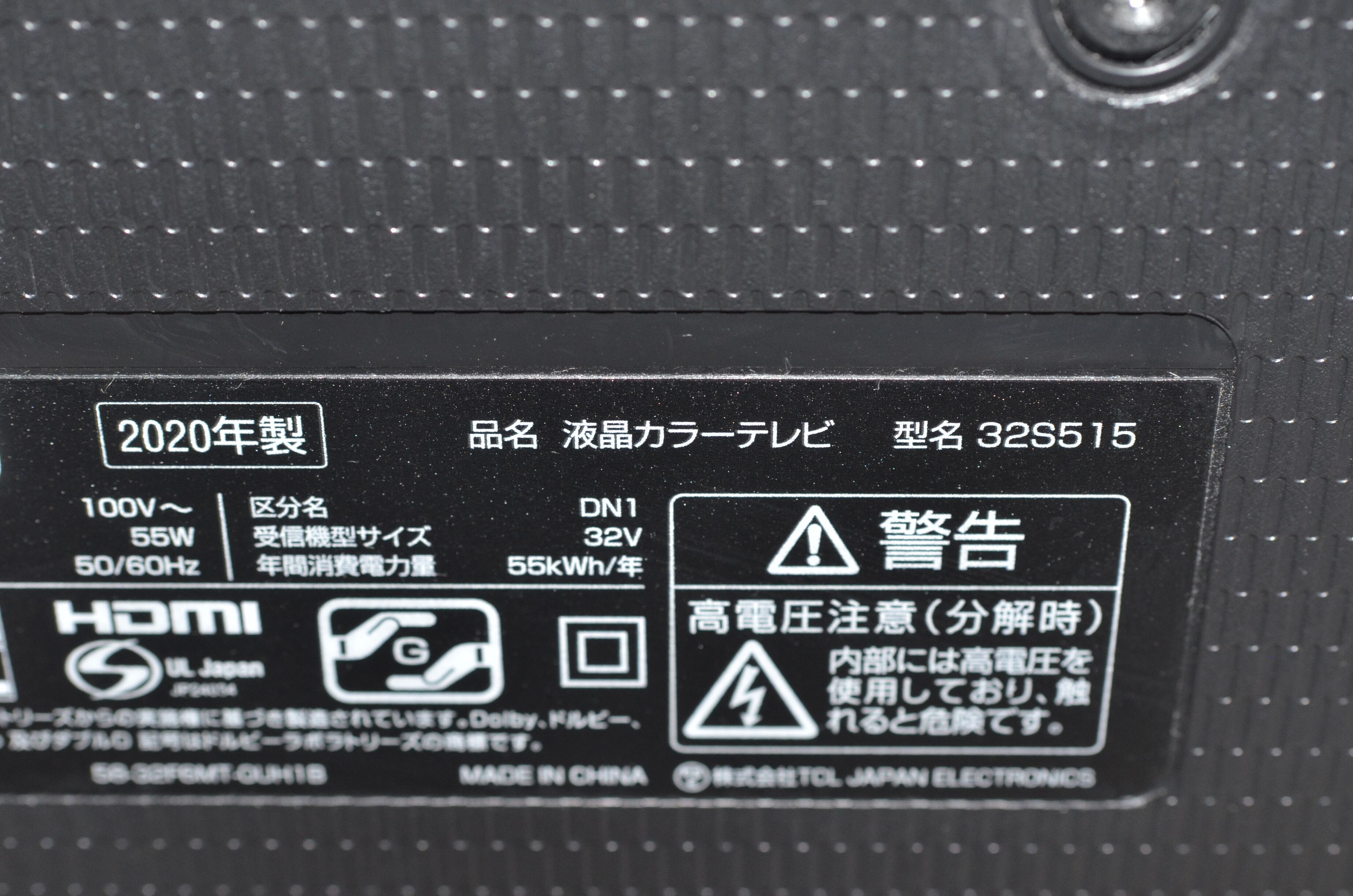 中古品 TCL ティーシーエル 液晶テレビ 32V型 スマートテレビ 32S515 2020年 Android TV リモコン付属 確認済み