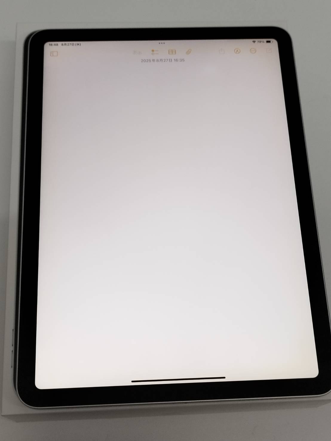 液晶に傷はありませんが、フチ沿いに黄ばみ・一ヶ所光漏れが発生しています。