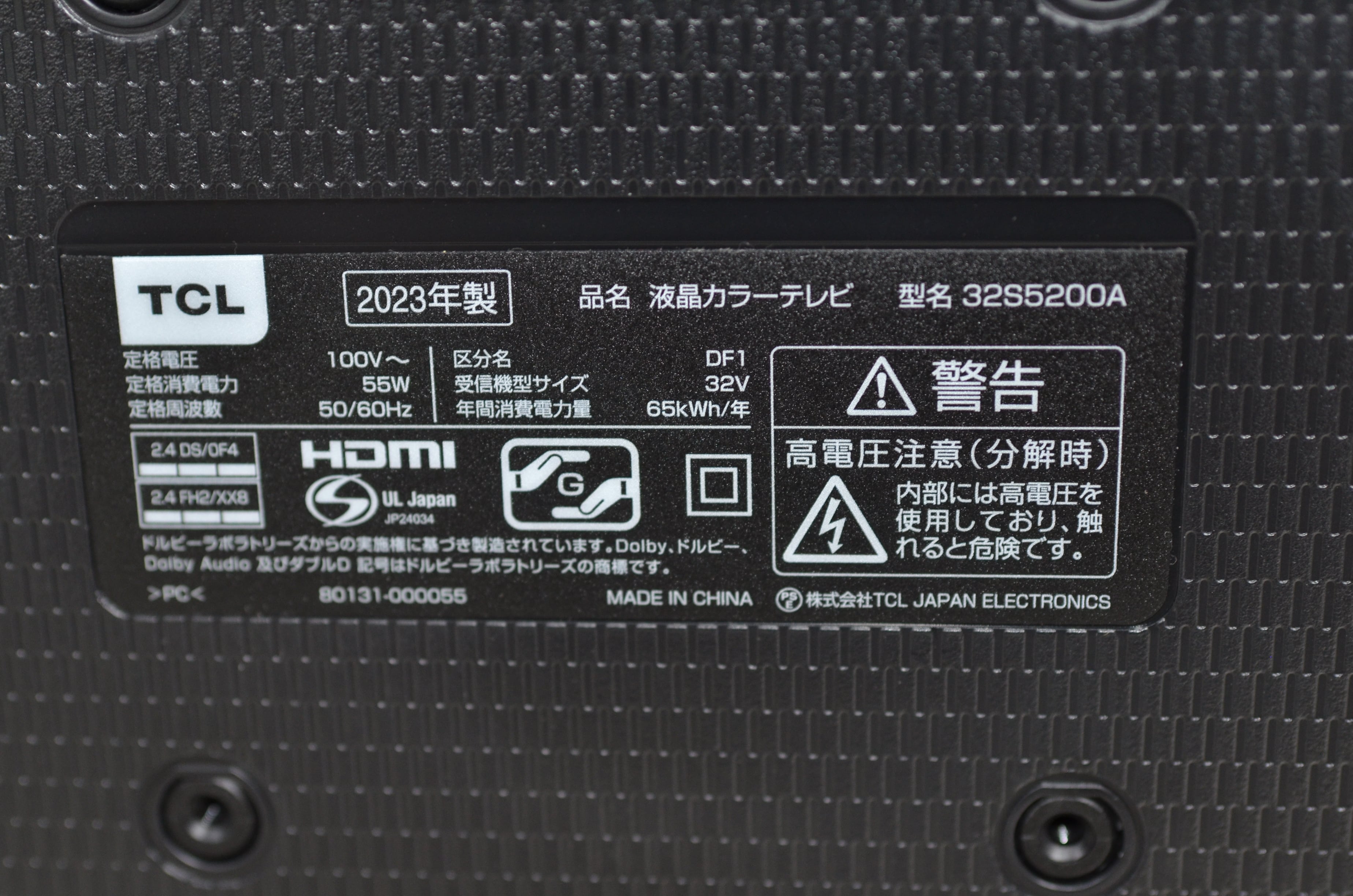 2023年製 中古良品 TCL 32型 フルハイビジョン 32S5200A 液晶 スマートテレビ Android 2023年製 アンドロイド
