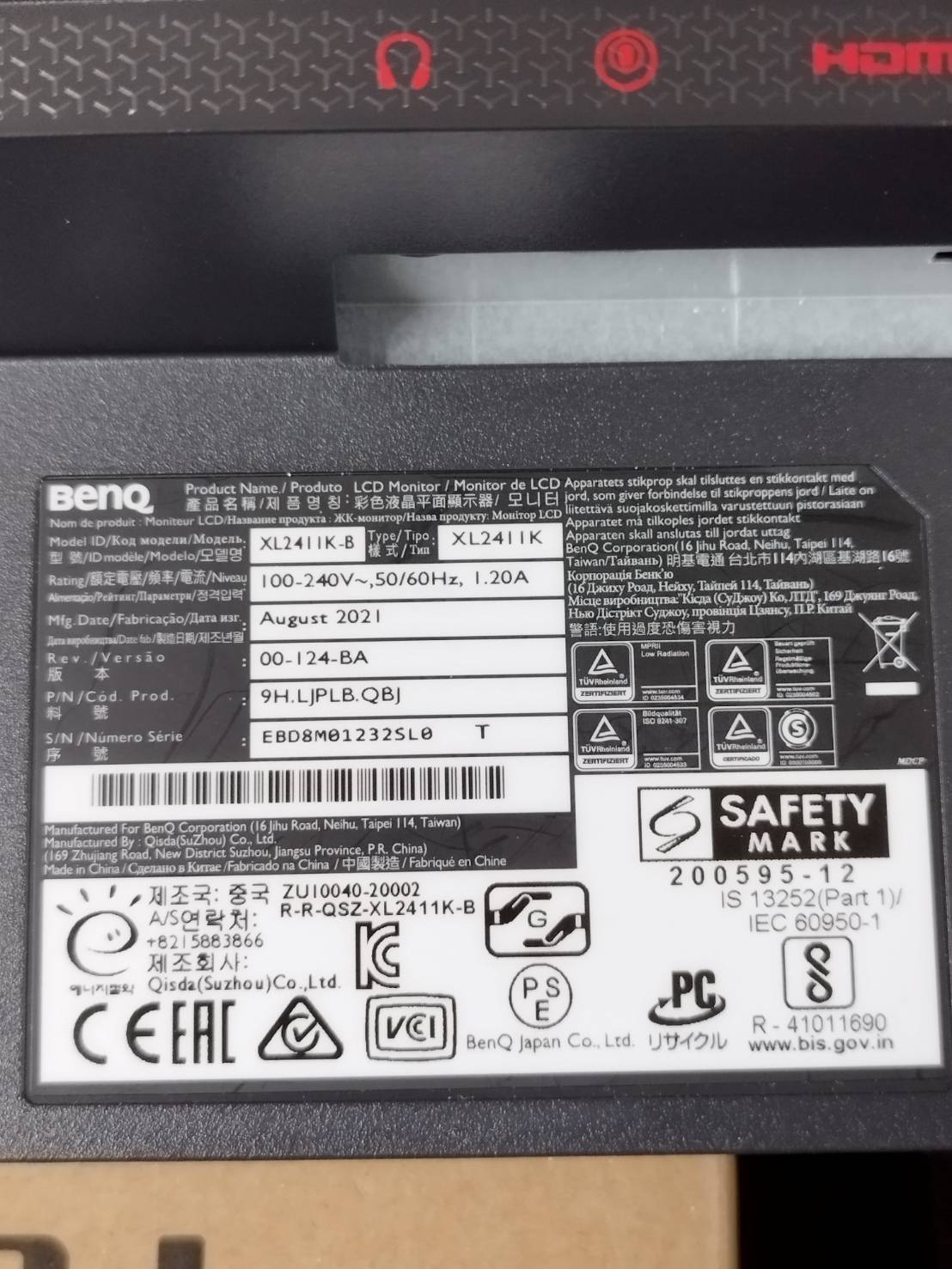中古品 BENQ ZOWIE XL2411K 24型ワイド液晶ディスプレイ フルHD 確認済