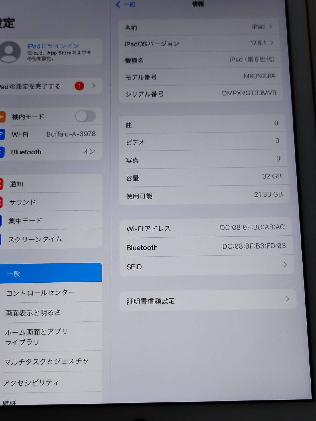 【Wi-Fiモデル】iPad 第6世代/A1893/32GB〈MRJN2J/A〉