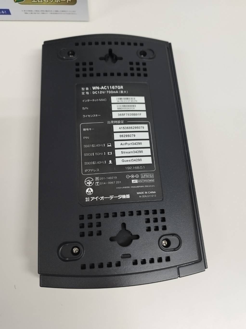 【良品】I-O DATA WN-AC1167GR 無線LANルーター