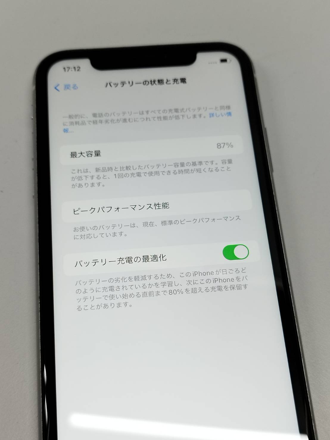 液晶に傷なし、状態は良好です。バッテリー最大容量87%