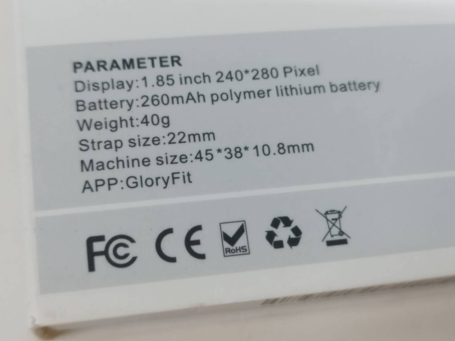 内容物:本体、バンド、充電ケーブル、印刷物(画像1枚目に写っているもの)