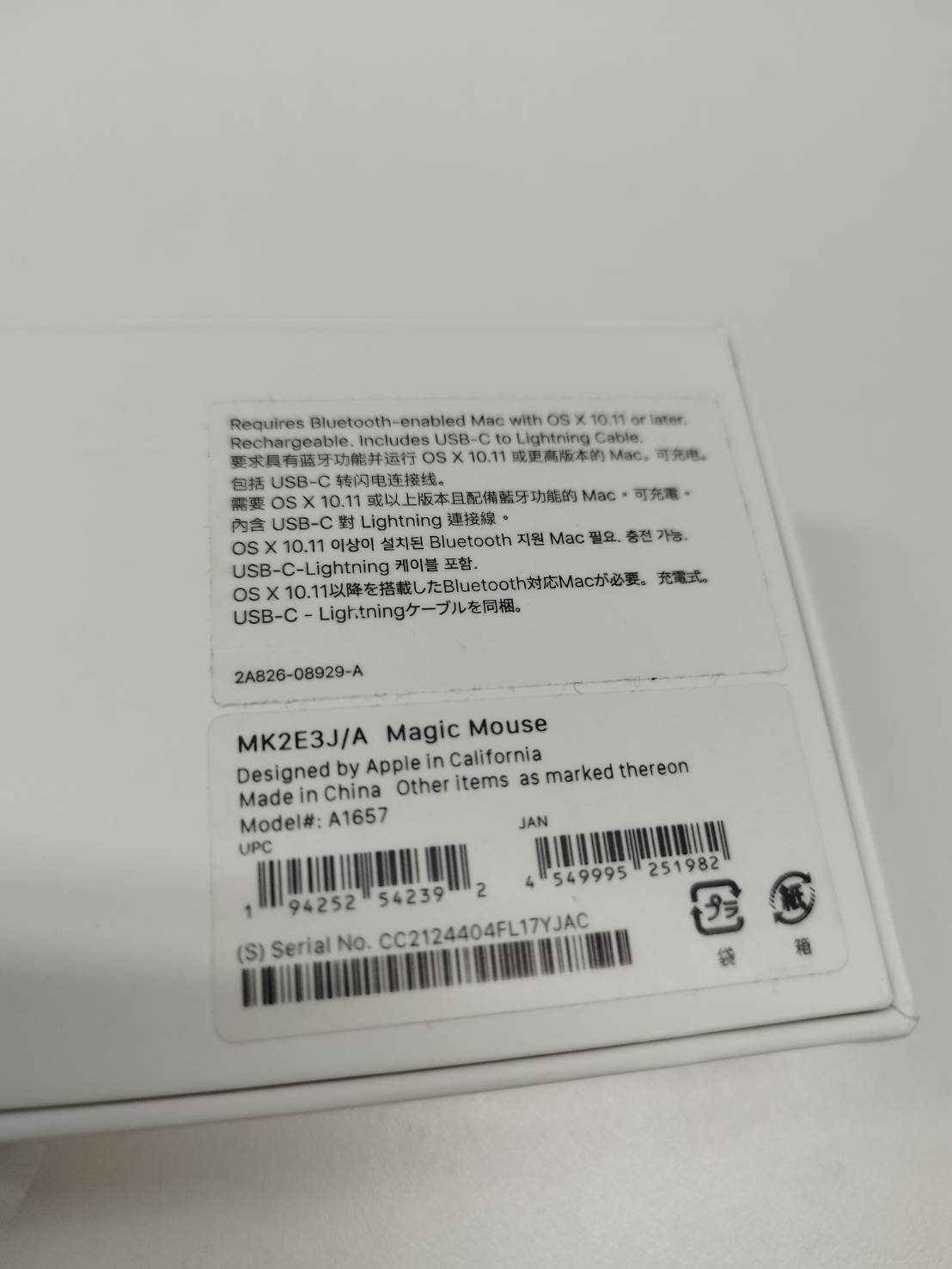 Apple Magic Mouse/A1657/マジックマウス〈MK2E3J/A〉