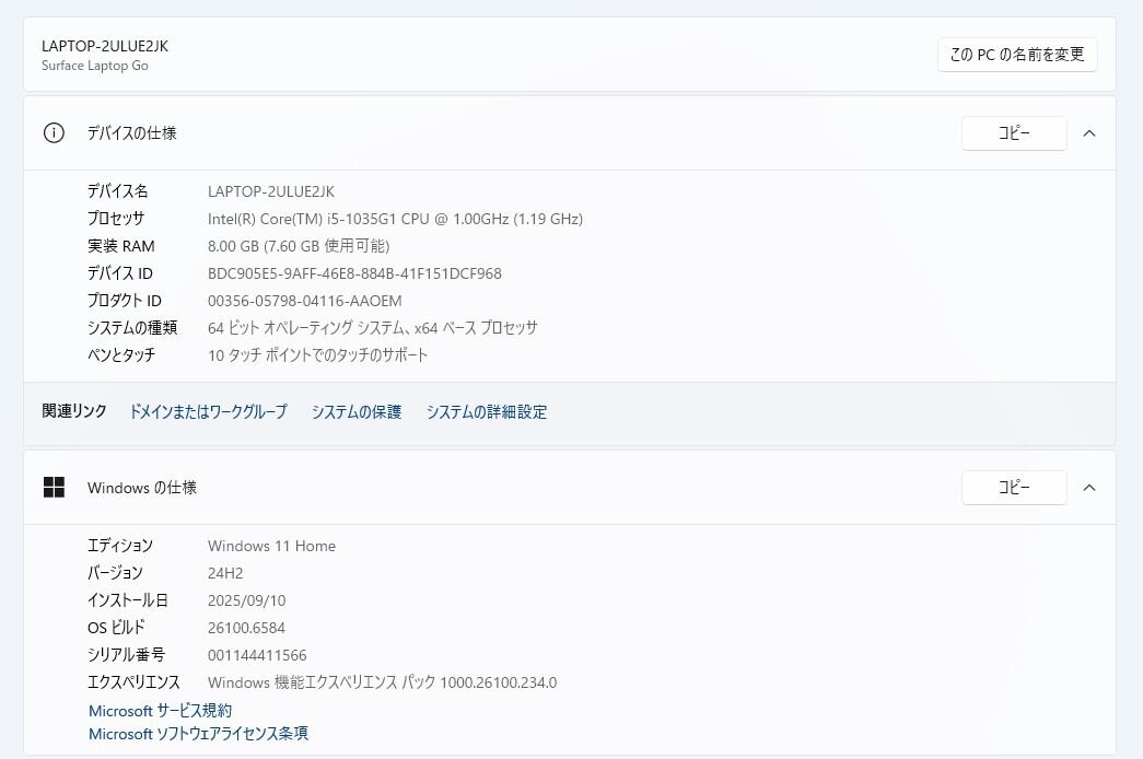 Surface Laptop Go(第1世代)intel Core i5/256GB/8GB ⑤