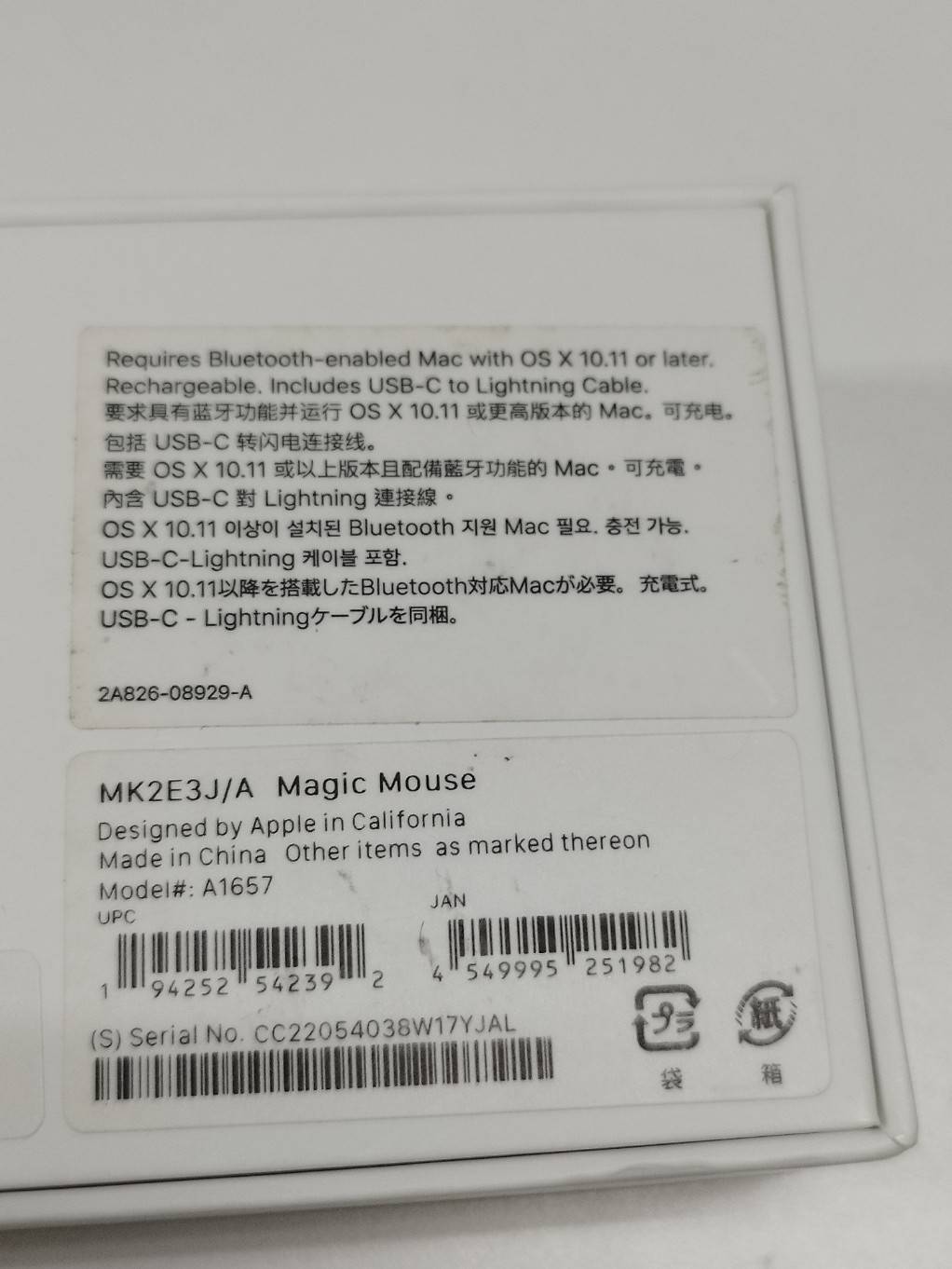 Apple Magic Mouse/A1657〈MK2E3J/A〉