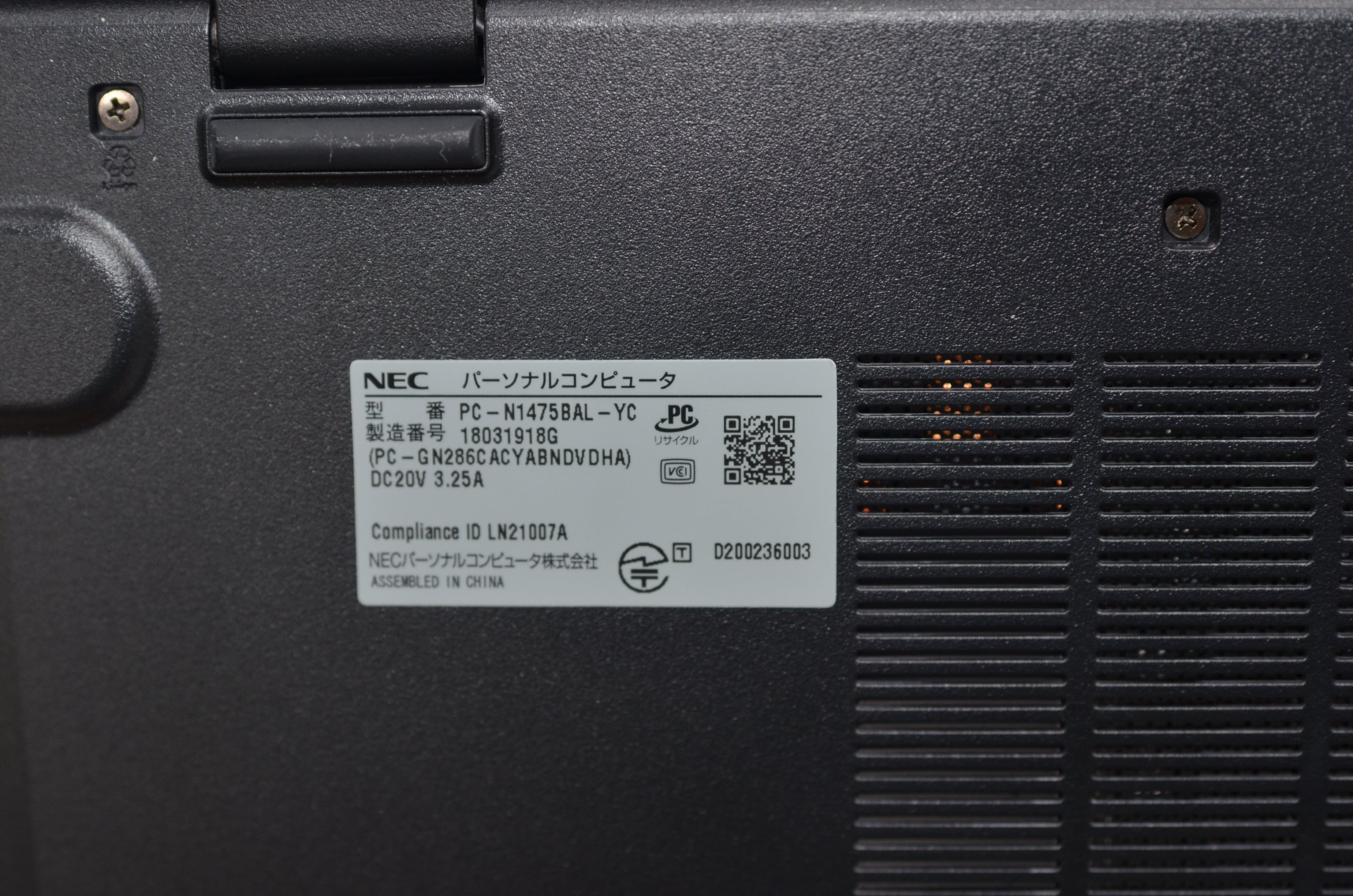中古良品ノートパソコン 14インチ NEC PC-N14575BAL-YC