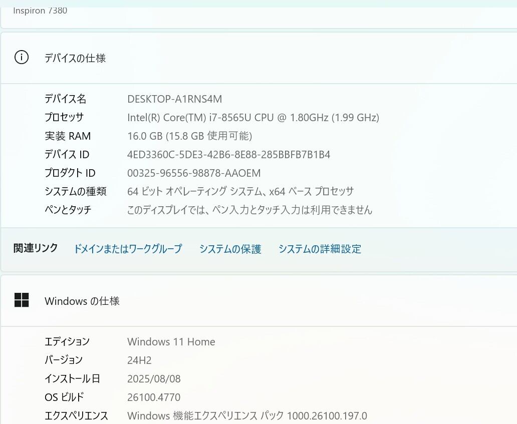 中古ノートパソコン DELL Inspiron 7380 Windows11+office 爆速SSD512GB core i7-8565U/メモリ16GB/13.3インチ/webカメラ