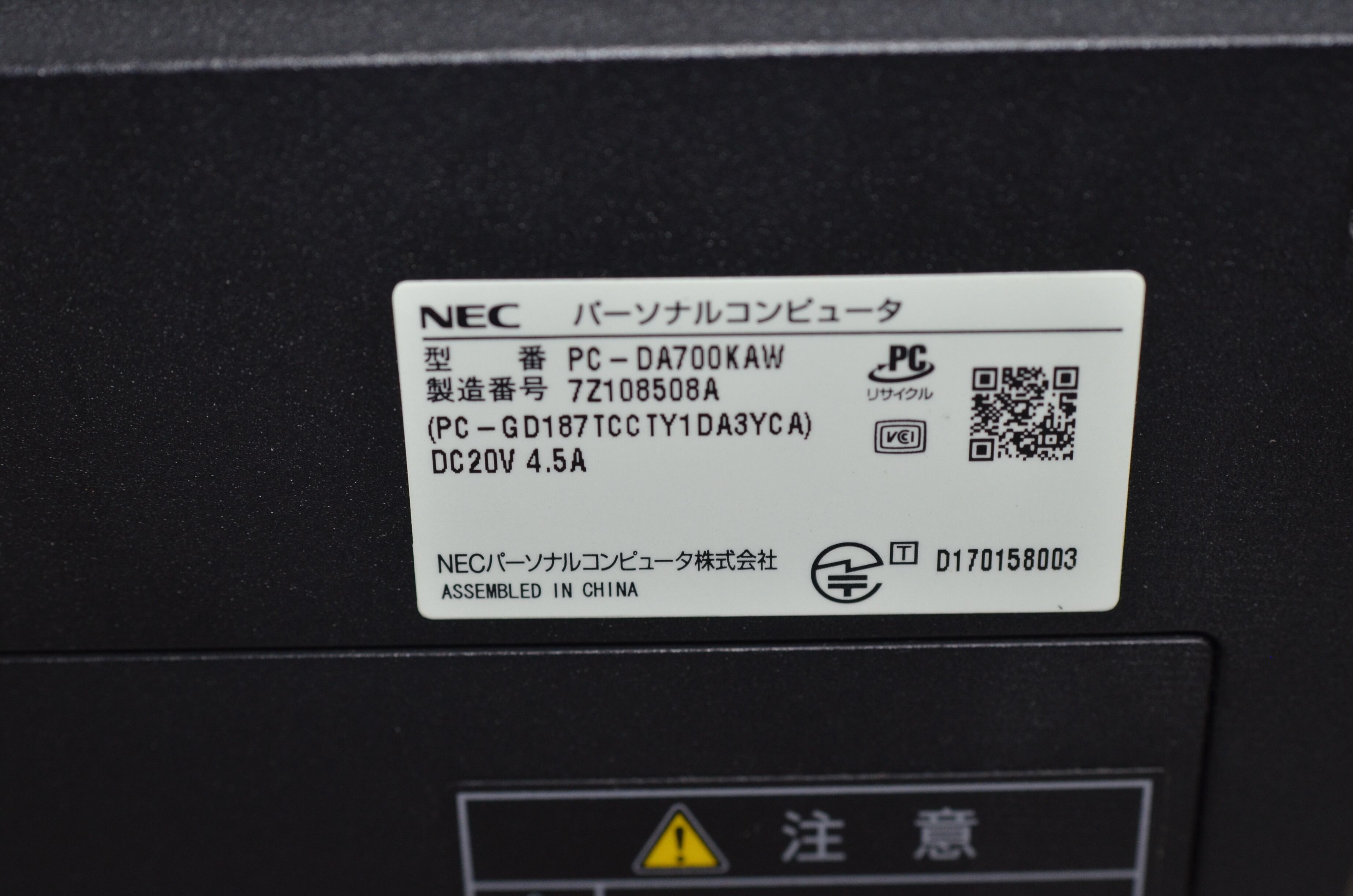 中古一体型パソコン NEC DA700/K(PC-DA700KAW)以下、仕様となります。