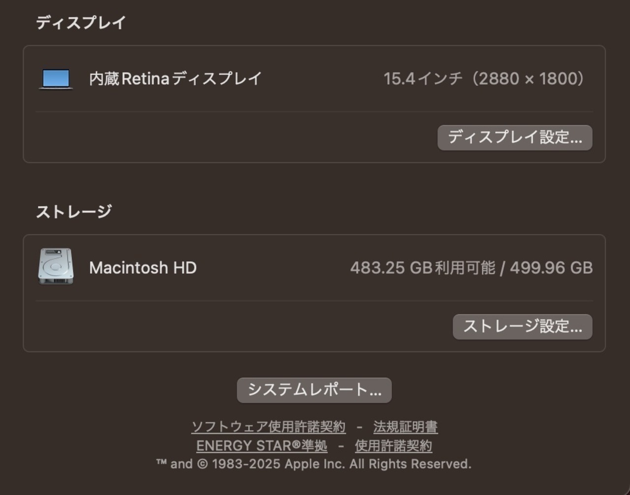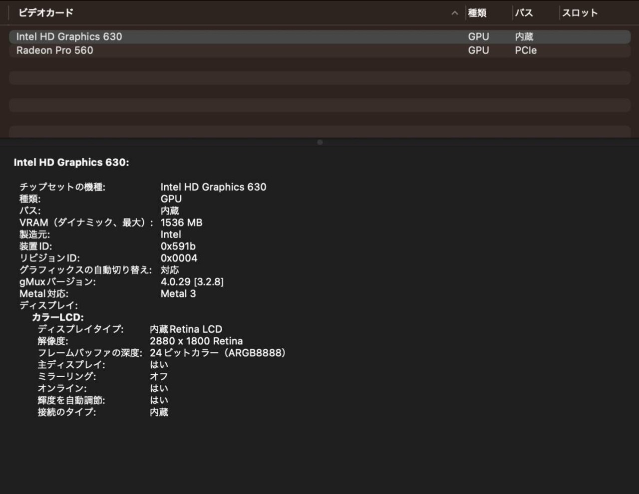 ・ディスプレイ:15.4インチディスプレイ(2,880 x 1,800)
