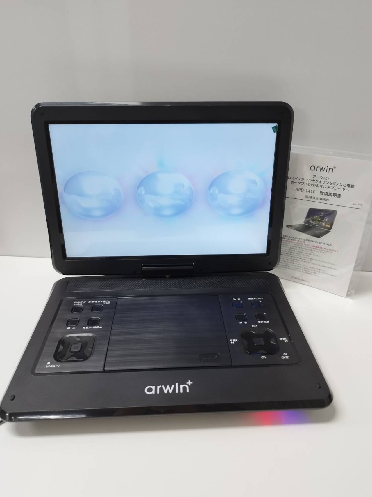 【良品】arwin APD-141F/14.1インチ フルセグ&ワンセグテレビ搭載 ポータブルDVD&マルチプレーヤー