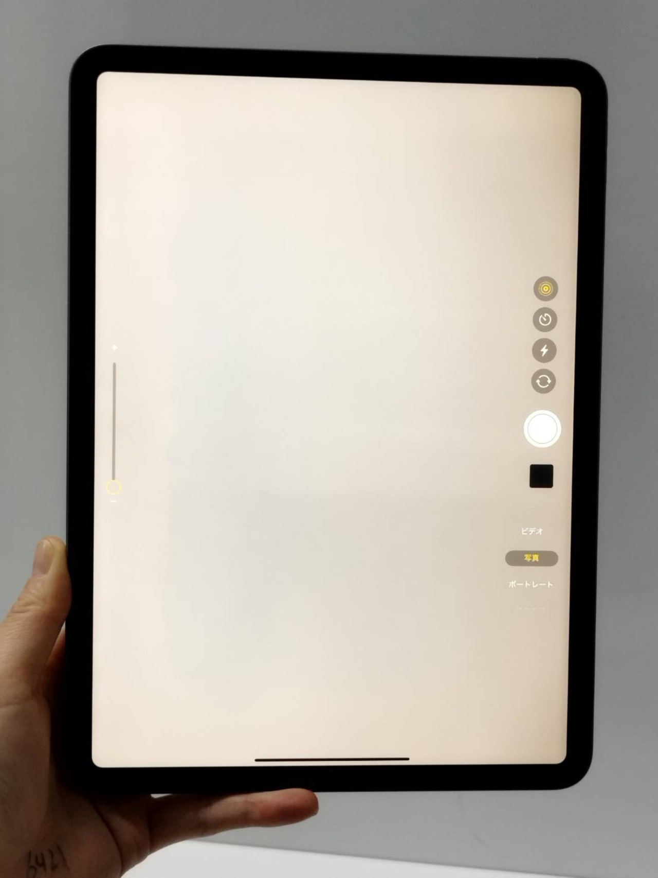 液晶に傷はありませんが、全体に色ムラや黄ばみが発生しています。