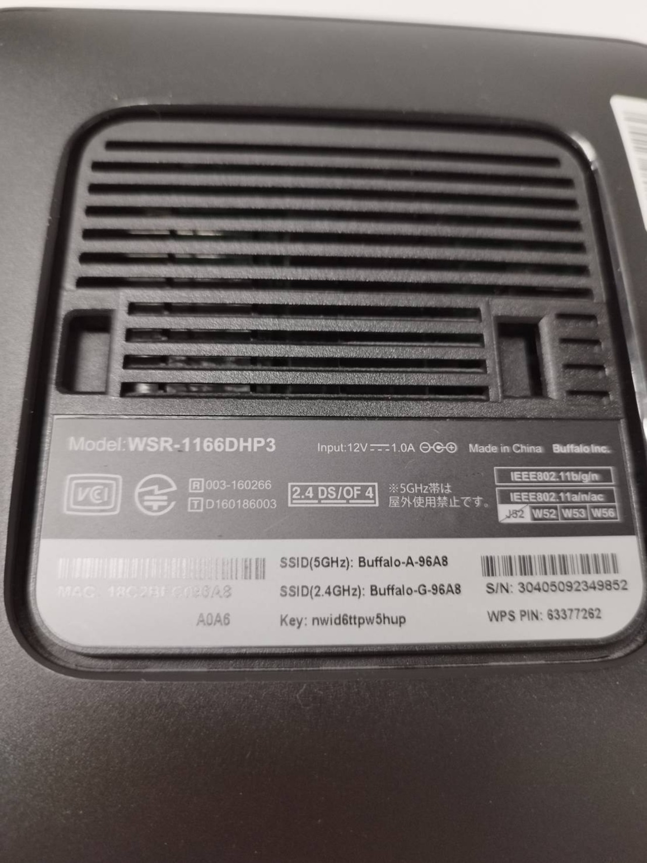 【美品】BUFFALO WSR-1166DHP3-BK/無線LANルーター