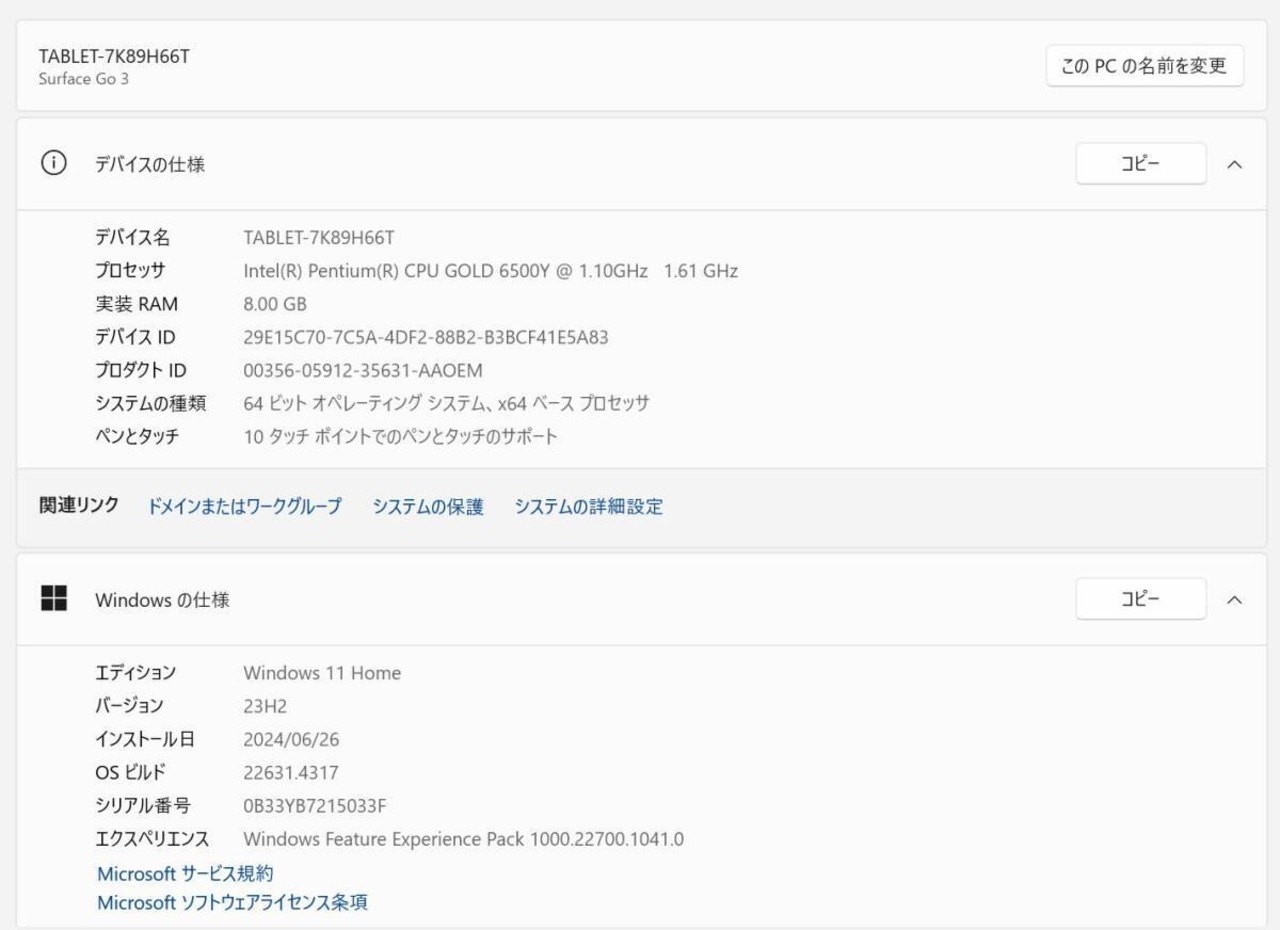 Surface Go 3/intel Pentium GOLD/128GB/8GB ⑤