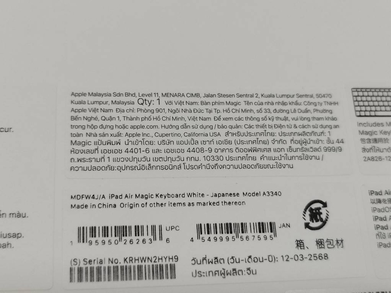 【美品】iPad Air (M2)(M3) Magic Keyboard/13インチ/A3340/日本語配列/ホワイト〈MDFW4J/A〉