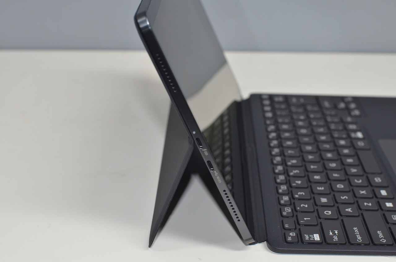 2台のパソコンを連携させるICチップと独自の「クリエイティブコネクト」を搭載した13.3型タブレットPC。薄さ約7.2mm、軽さ約599gで持ち運びやすい。