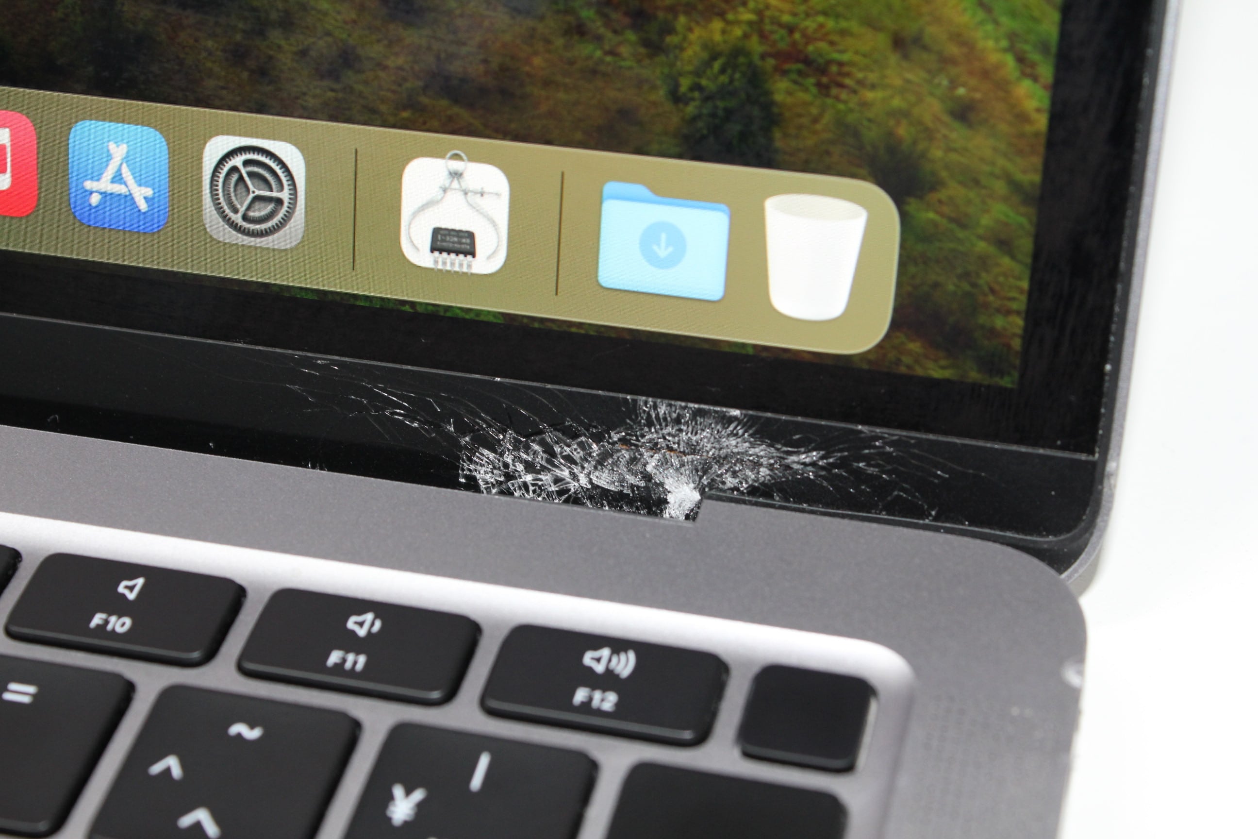 液晶画面ヒンジ付近に割れがあります(動作や映像への影響なし)