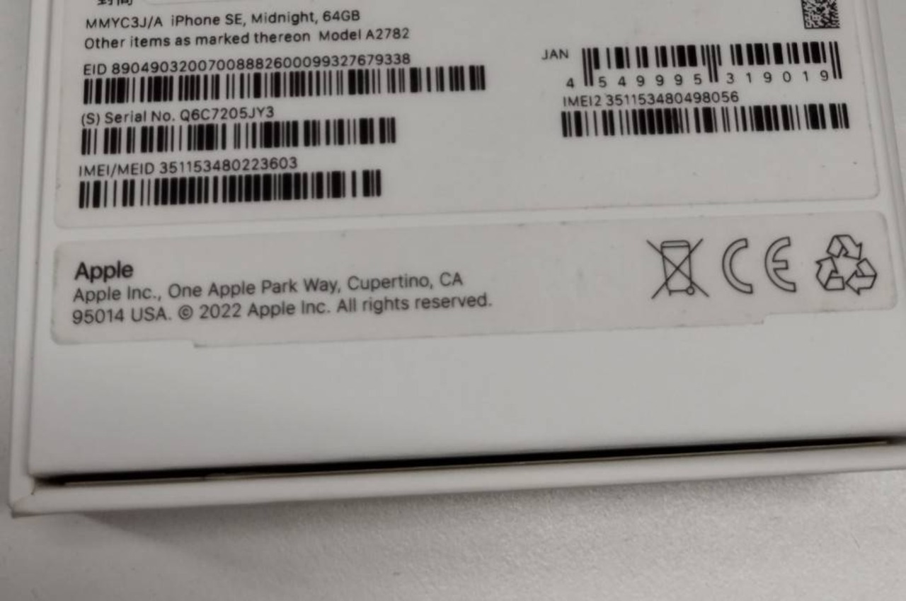 【SIMフリー】iPhone SE 第3世代/64GB/A2782〈MMYC3J/A〉