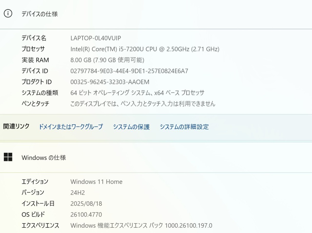 ■CPU:Intel Core i5-7200U (@2.50GHz)