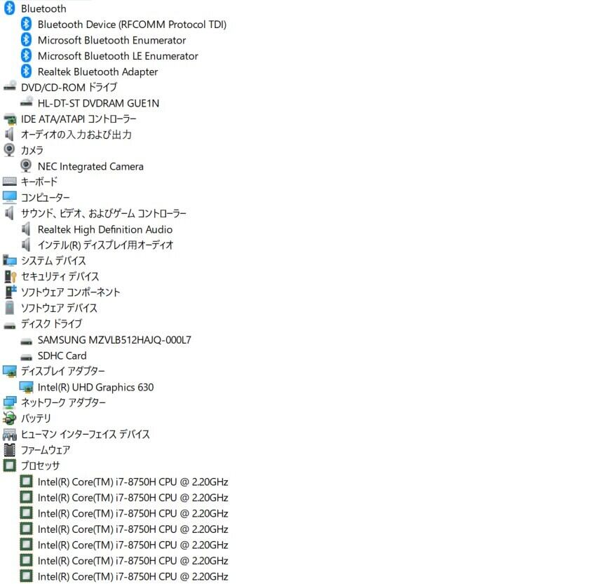 ■CPU:Intel Core i7-8750H (@2.20GHz)