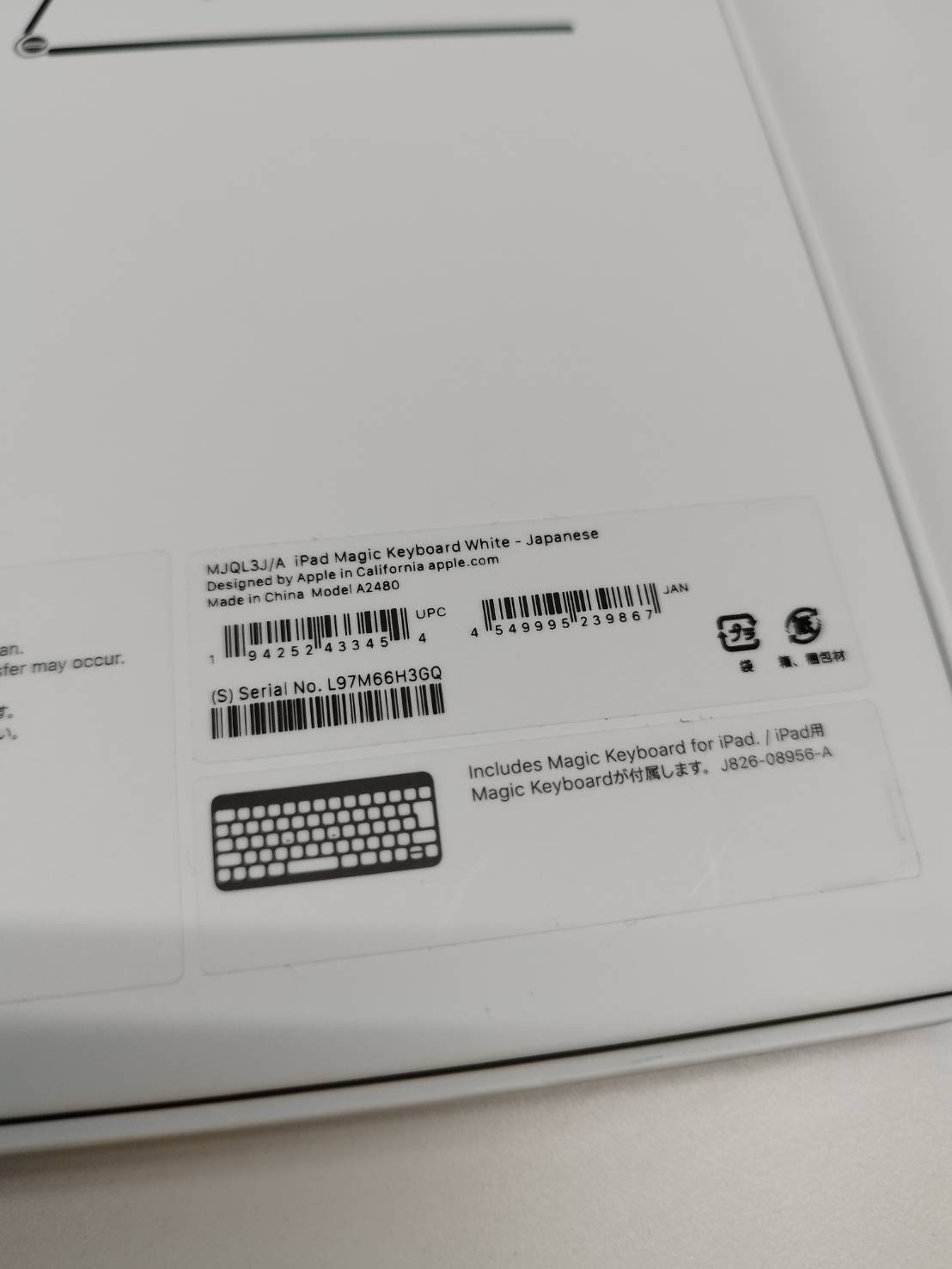 iPad Magic Keyboard/A2480/日本語配列/ホワイト〈MJQL3J/A〉(iPad Air 13インチ、iPad Pro 12.9インチ第3~6世代対応)