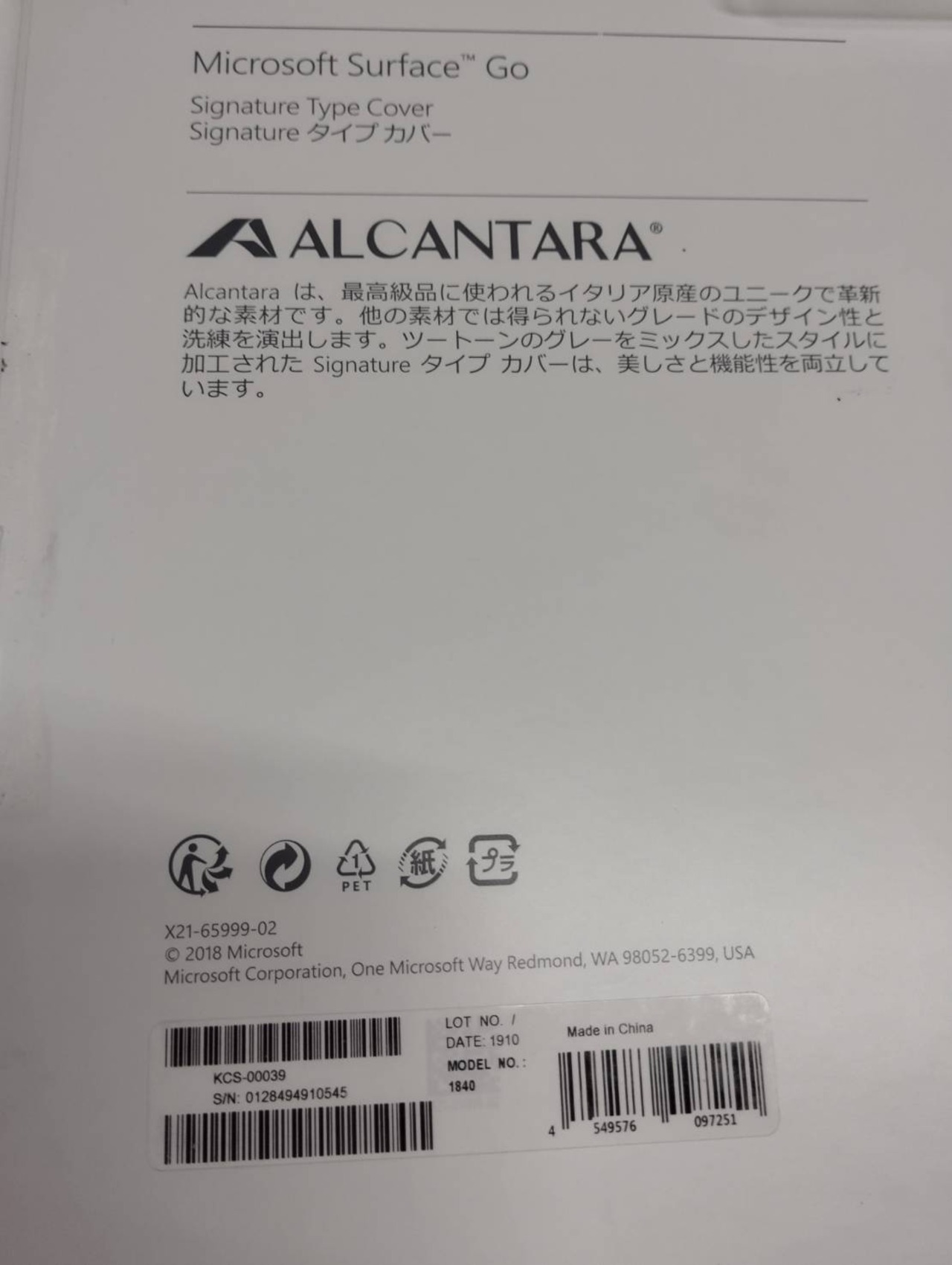 Microsoft Surface Go/タイプカバー/コバルトブルー〈Model:1840〉