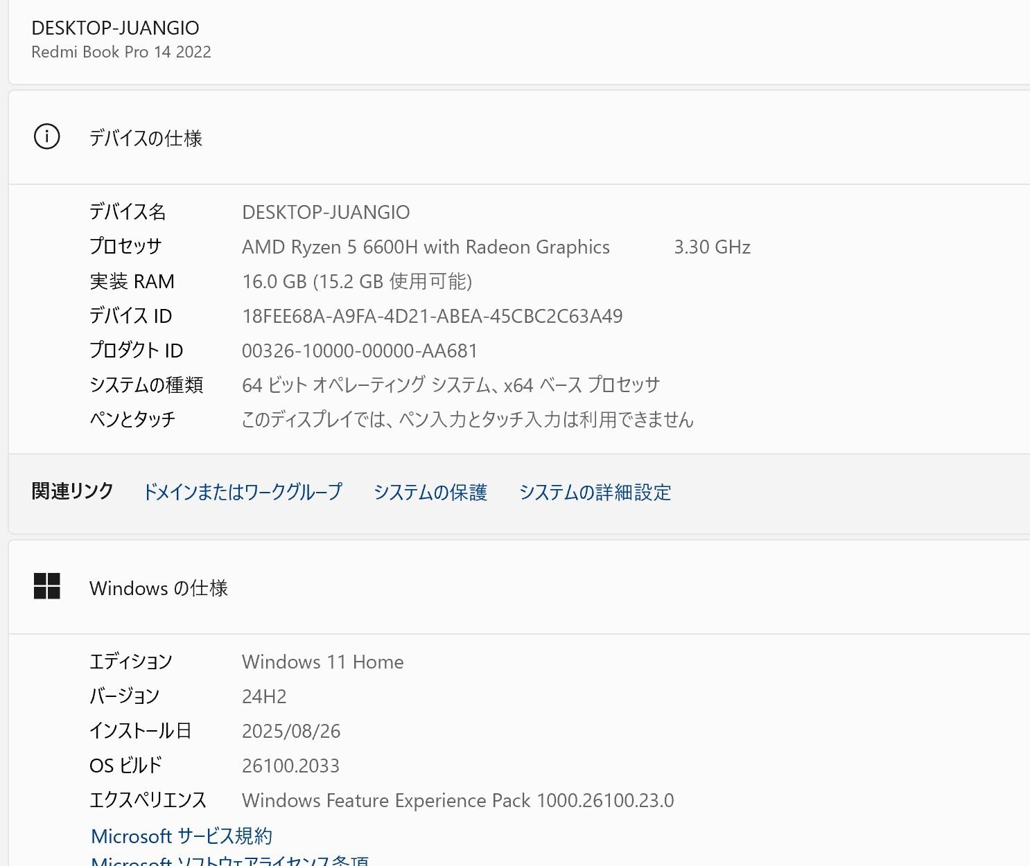 ■CPU:AMD Ryzen 5-6600H (@3.30GHz)