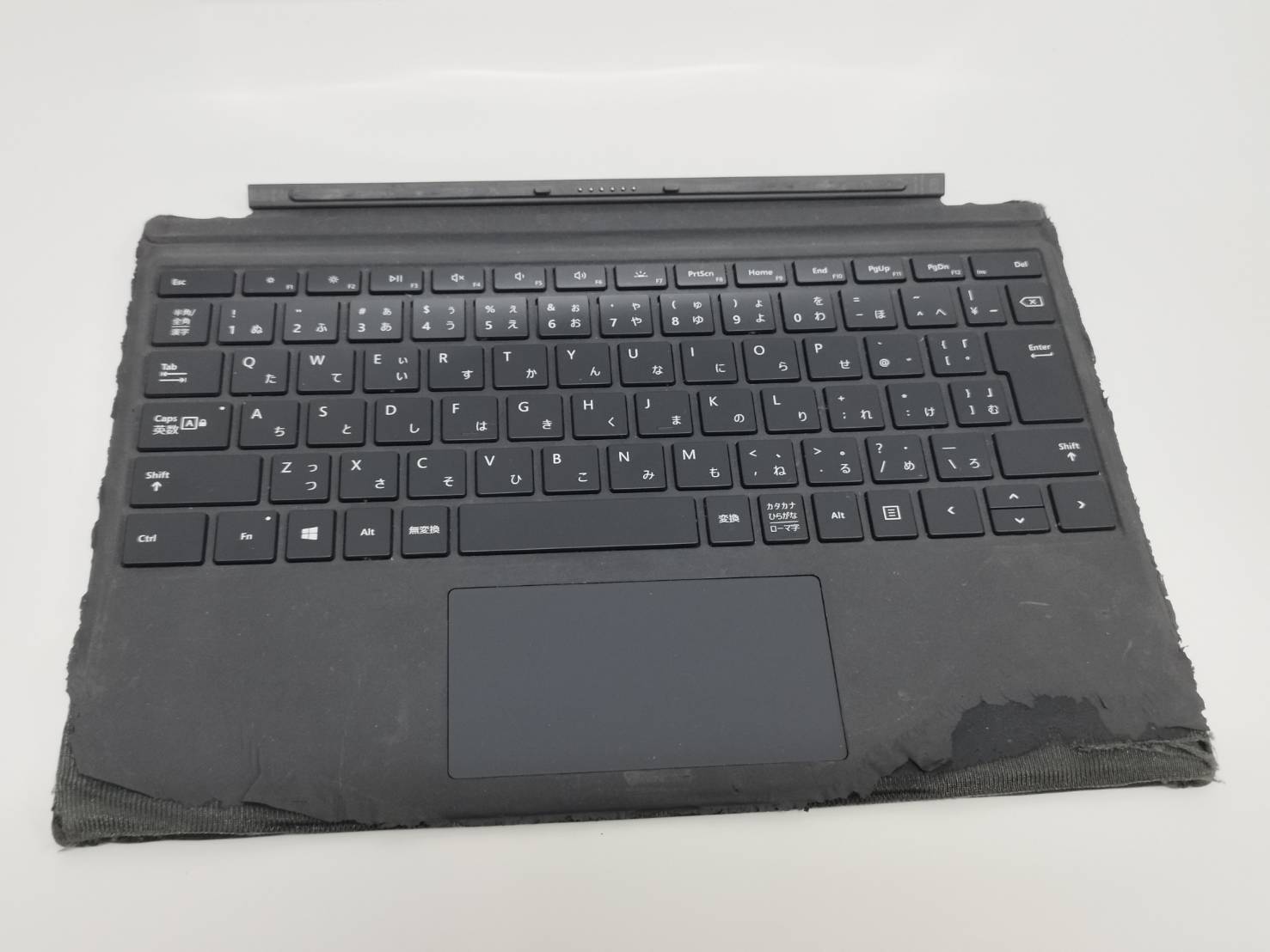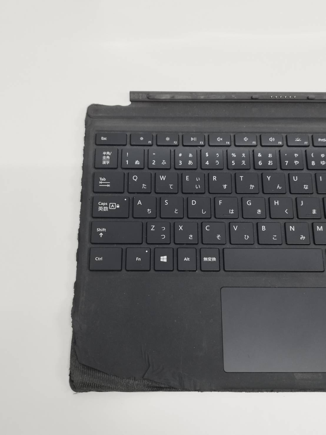 キーボード面の両下側の表面生地がめくれています。