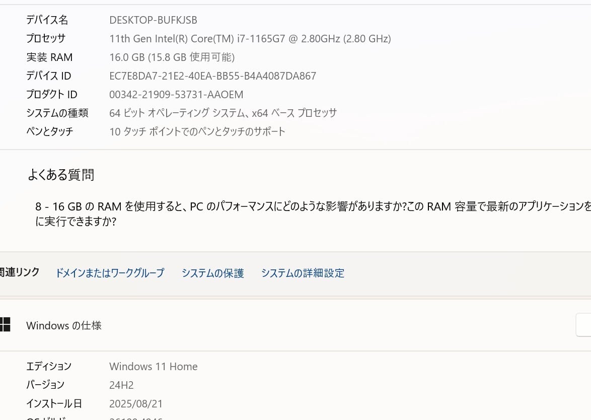 ■CPU:インテル core i7-1165G7 (@2.80GHz)