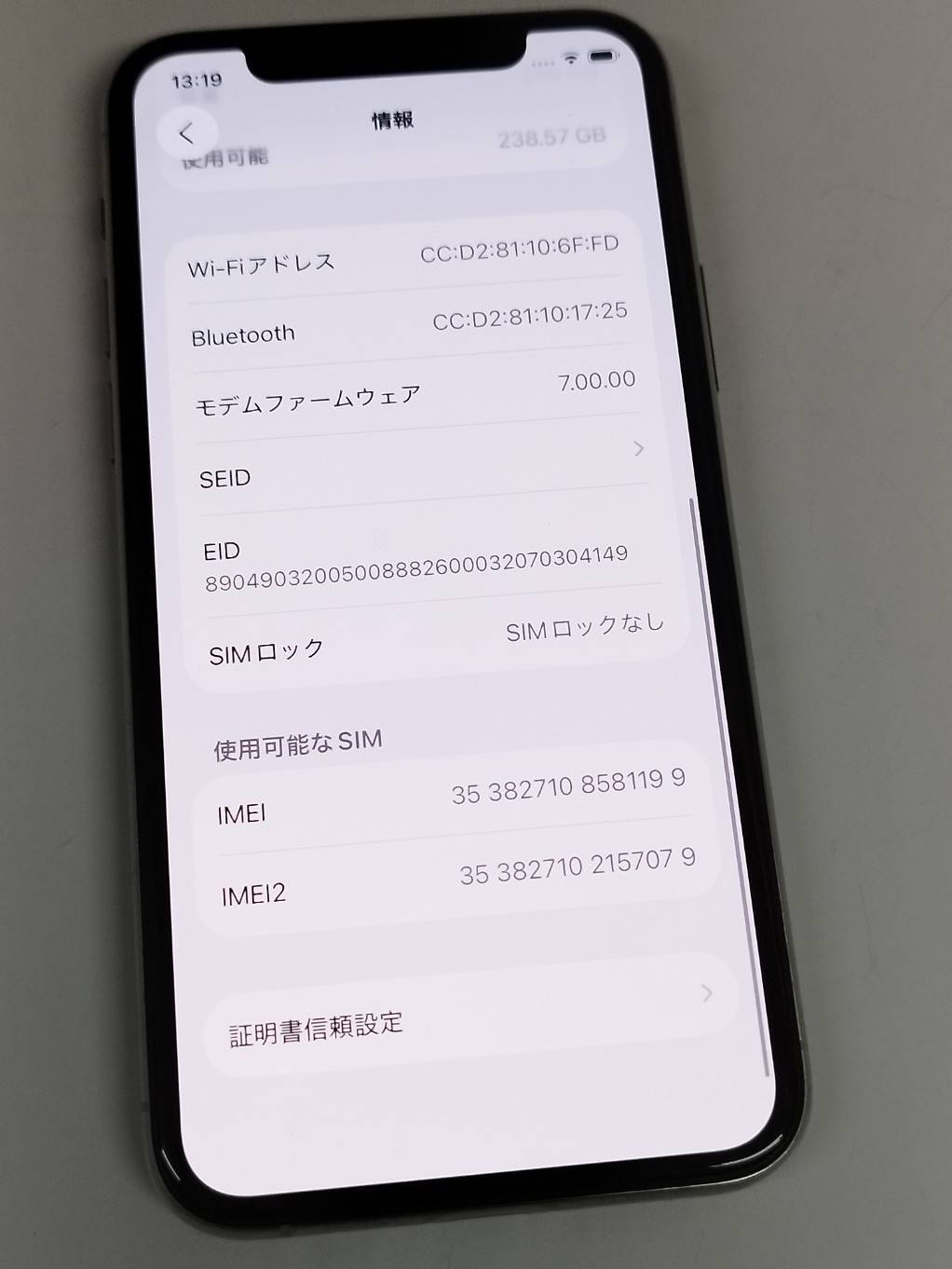 IMEI: 353827108581199 / SIMロックなし