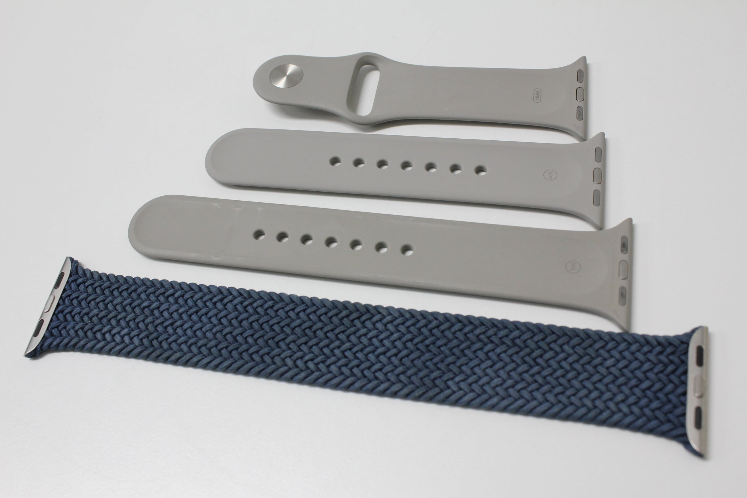 本体、スポーツバンド、ブレイデッドソロループ、充電ケーブル、元箱(画像1枚目に写っているものすべて)