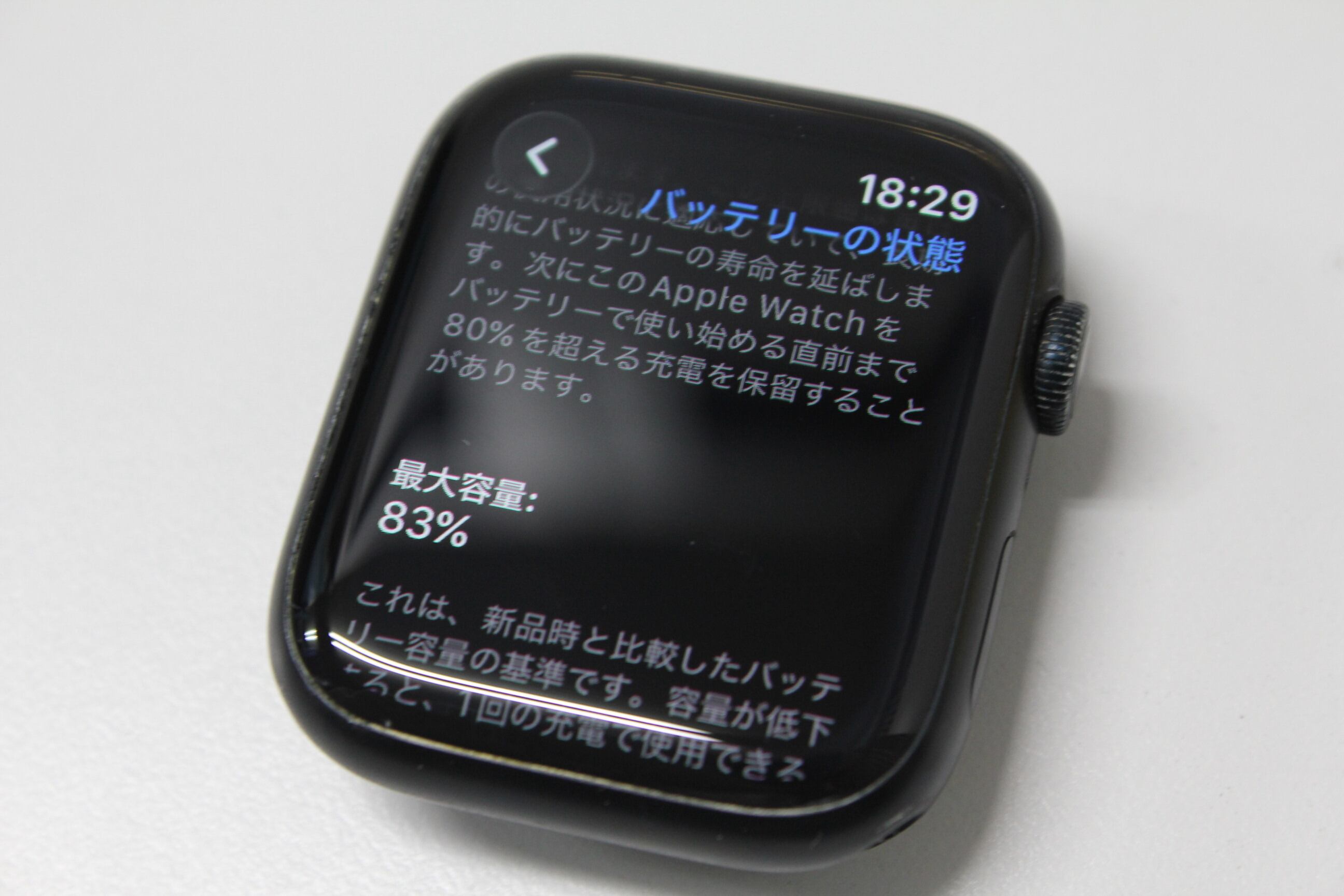 バッテリー最大容量:83%(※バッテリーは消耗品のため、保証致しかねます。またバッテリー状態はあくまで参考値のため、実際の稼働時間を保証するものではございません。)