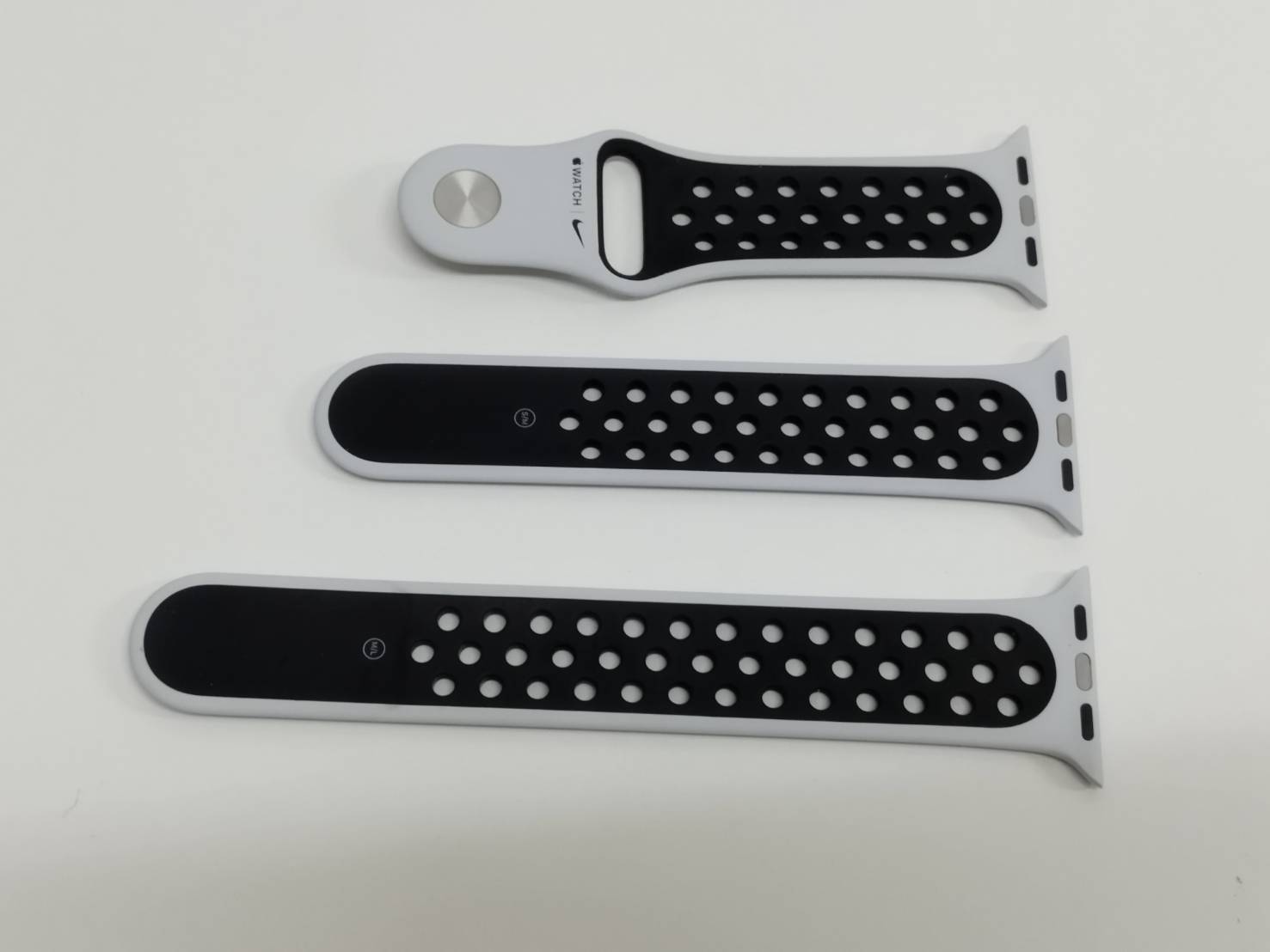 本体、Nikeスポーツバンド、充電ケーブル、印刷物(画像1枚目に写っているもの)
