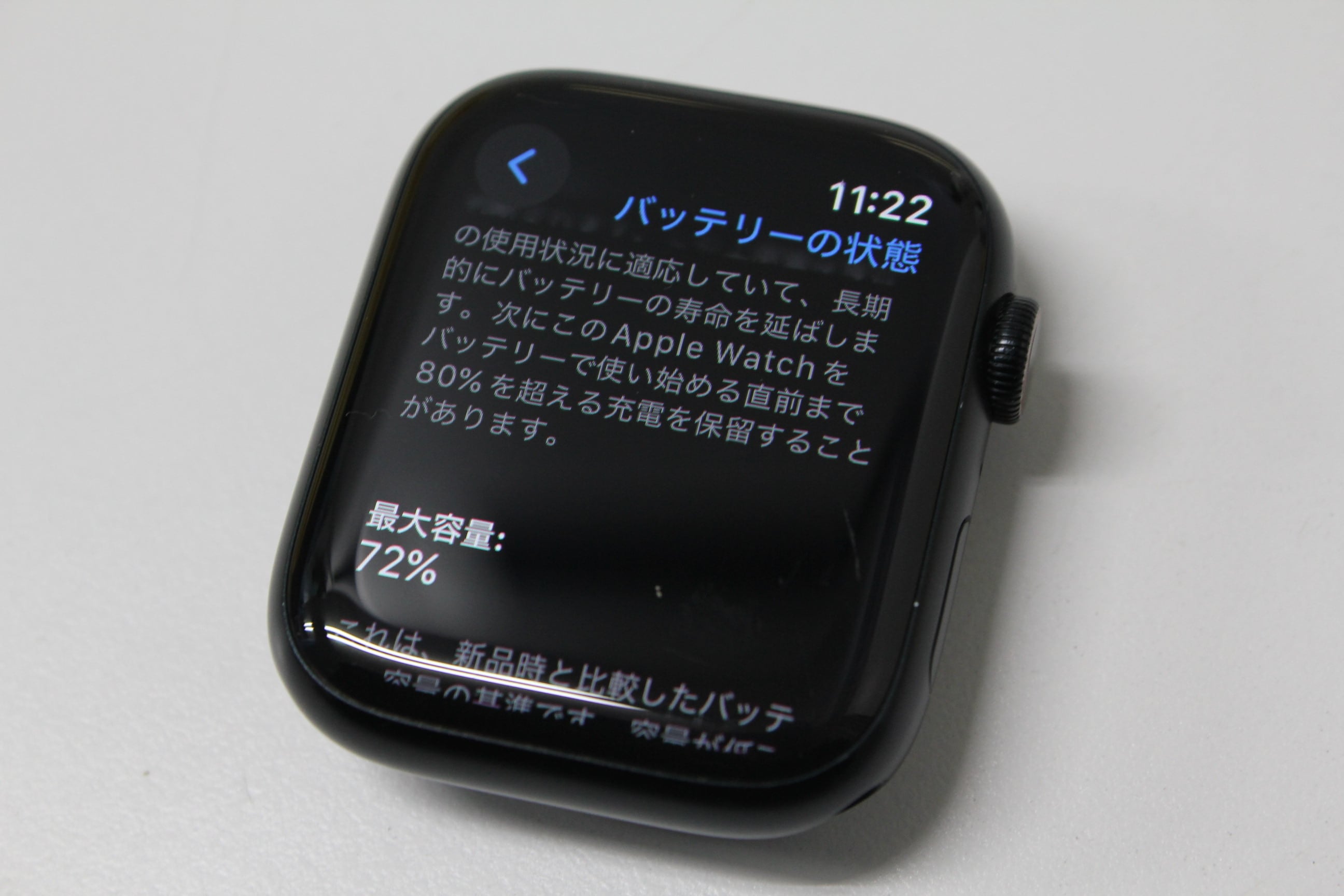 バッテリー最大容量:72%(※バッテリーは消耗品のため、保証致しかねます。またバッテリー状態はあくまで参考値のため、実際の稼働時間を保証するものではございません。)