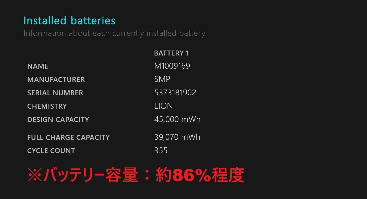 バッテリー状態:画像をご参考ください(※バッテリーは消耗品のため、保証致しかねます。またバッテリー状態はあくまで参考値のため、実際の稼働時間を保証するものではございません。)