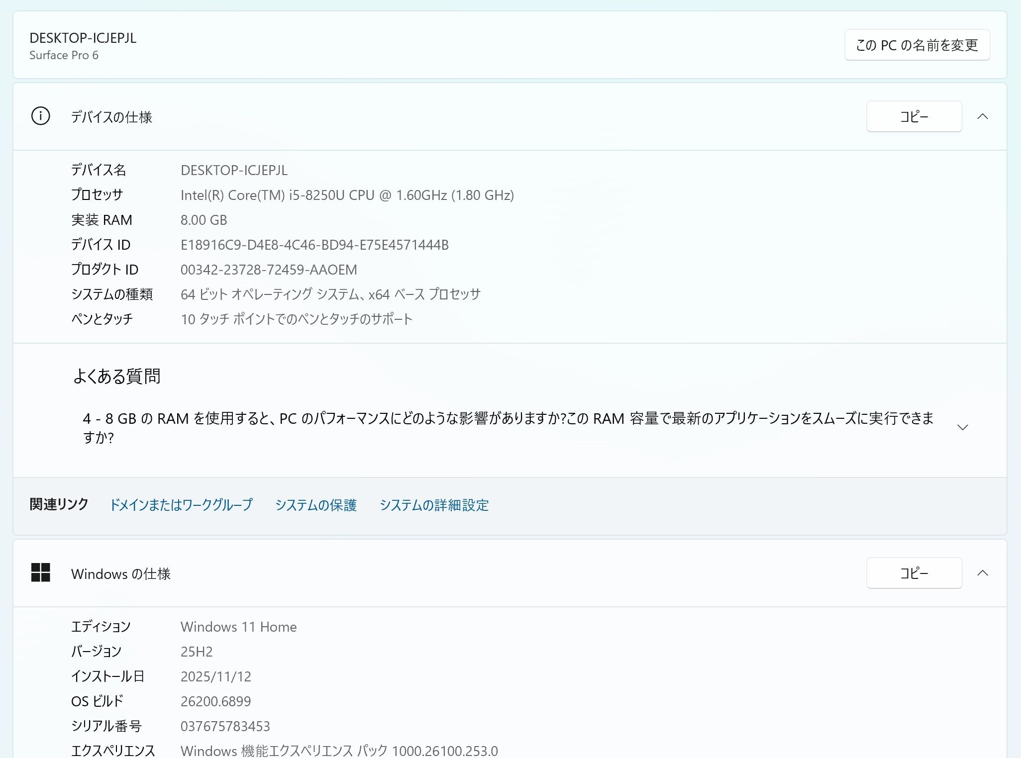 Surface Pro 6/intel Core i5/256GB/8GB ⑤