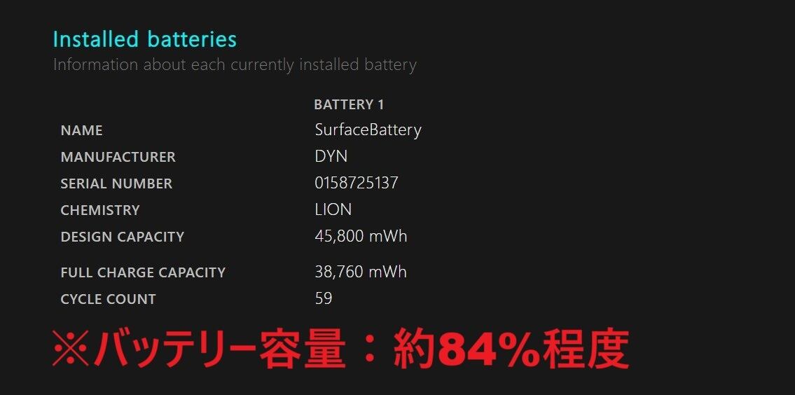 バッテリー状態:画像をご参考ください(※バッテリーは消耗品のため、保証致しかねます。またバッテリー状態はあくまで参考値のため、実際の稼働時間を保証するものではございません。)