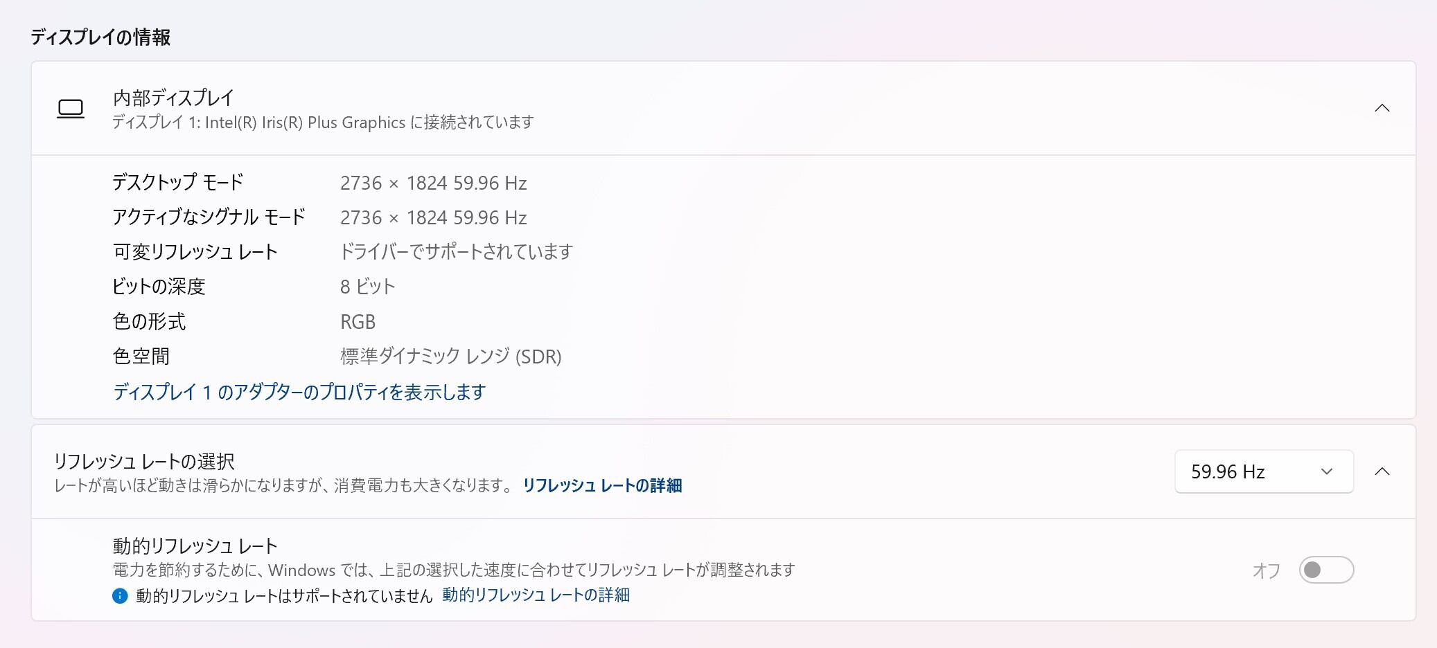 ディスプレイ:12.3インチ PixelSence (2,736 × 1,824)