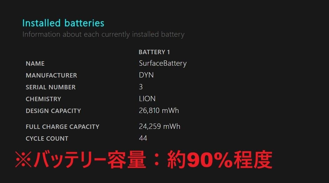 バッテリー状態:画像をご参考ください(※バッテリーは消耗品のため、保証致しかねます。またバッテリー状態はあくまで参考値のため、実際の稼働時間を保証するものではございません。)