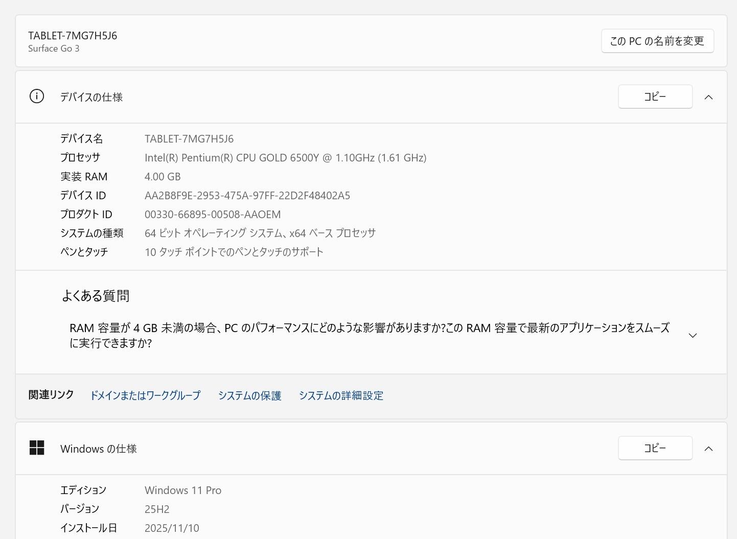 CPU:Intel Pentium GOLD 6500Y 1.10GHz(1.61GHz)