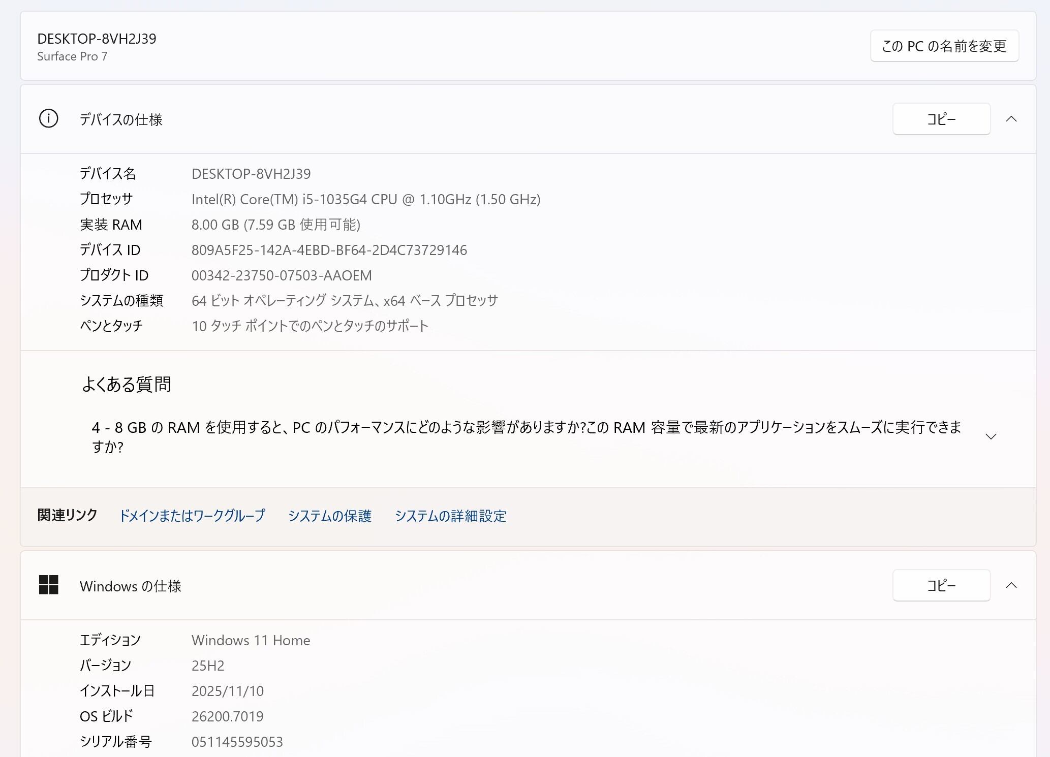 Surface Pro 7/Intel Core i5/256GB/8GB ⑥