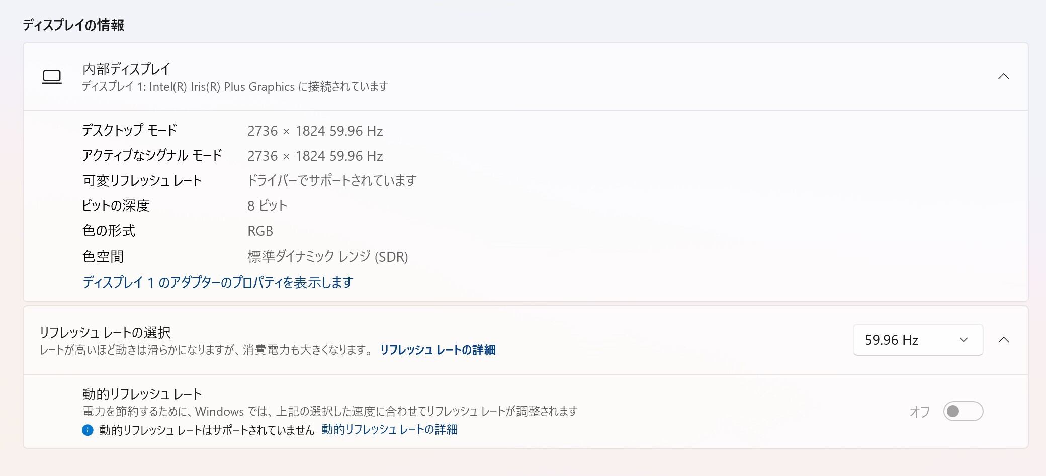 ディスプレイ:12.3インチ PixelSence (2,736 × 1,824)