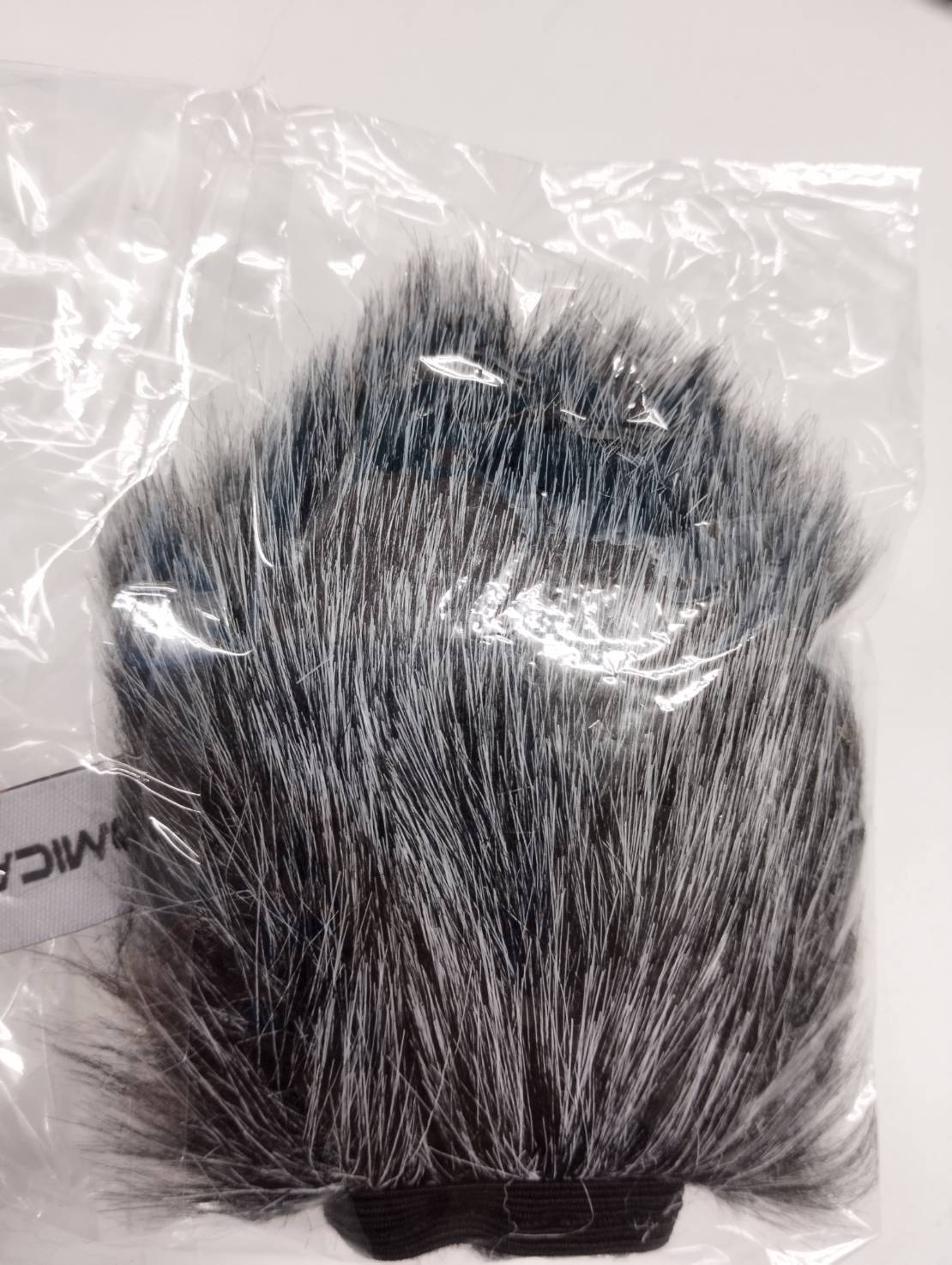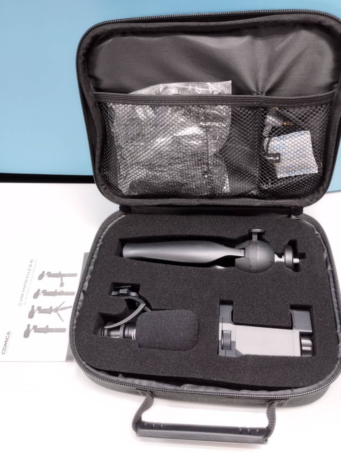 内容物:マイク、留め具、三脚、ケーブル、ウィンドマフ、ケース、印刷物(画像1枚目に写っているもの)